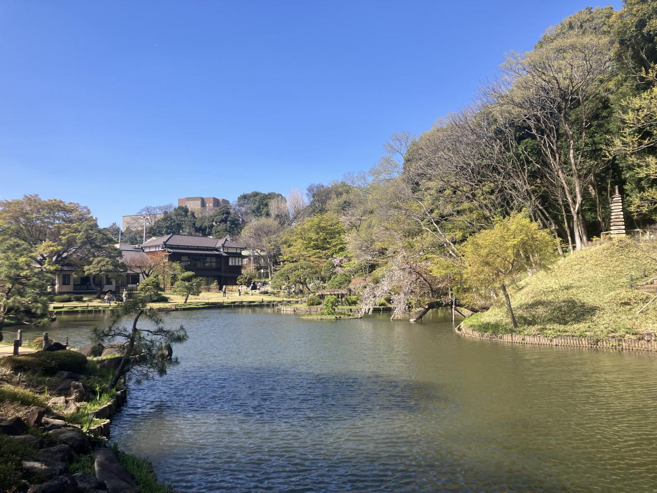 細川家下屋敷の庭園の跡地にも見事な桜