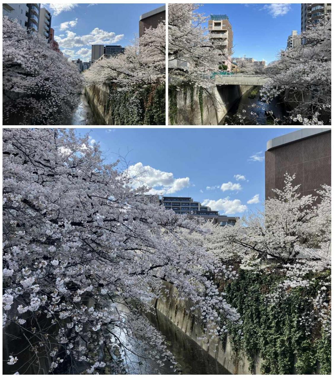 豊橋から眺める神田川と桜