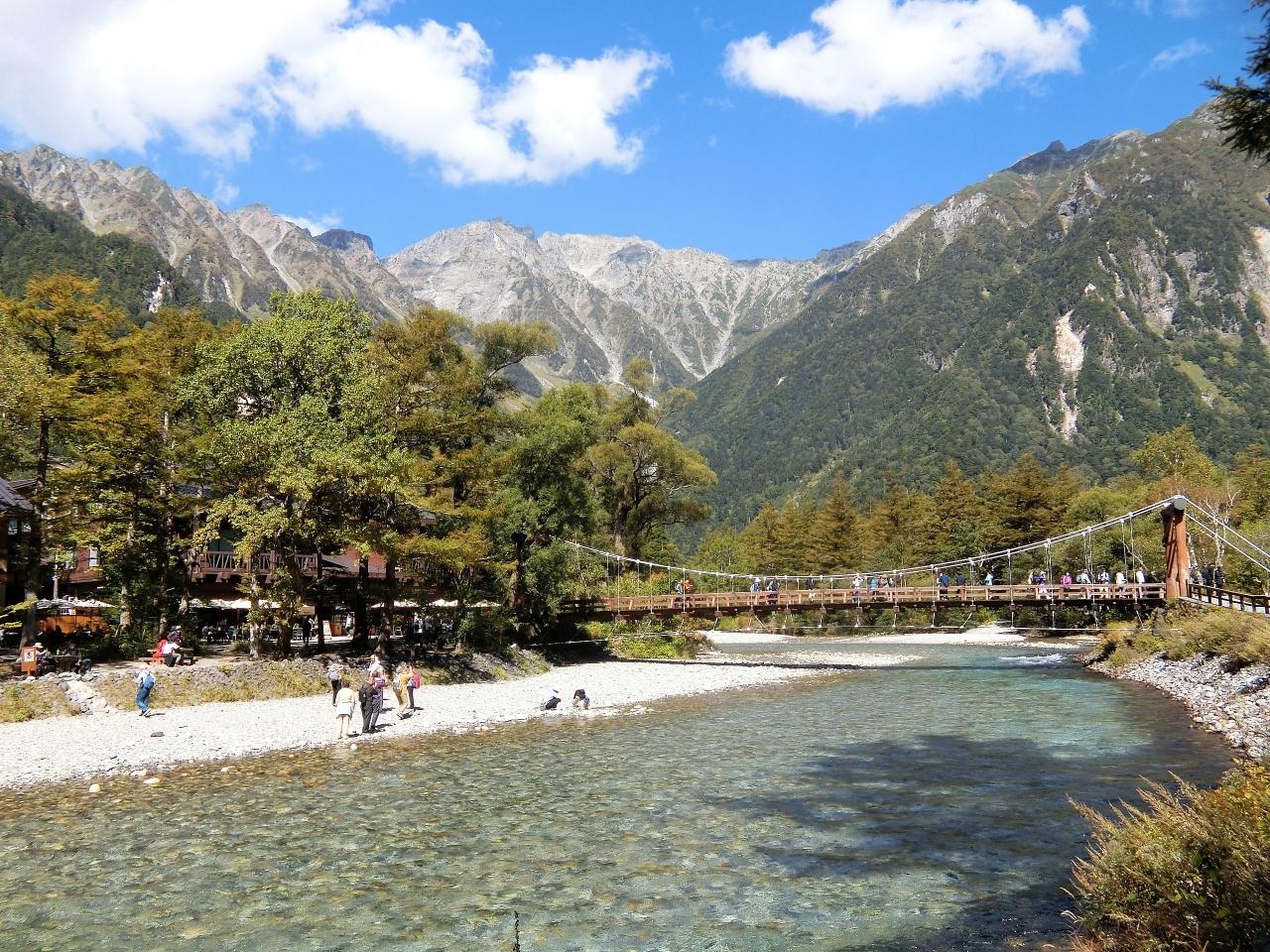 大学時代に訪れた時は確かに快晴で天候はとても良かったのですが、午後山の天候が変化して雲が湧き出たためにジャンダルムは見れませんでした。ならば翌朝にと期待していましたが翌日は朝から曇り空で穂高連峰全域を雲が覆っていて悔しい思いをしました。河童橋 名所・史跡