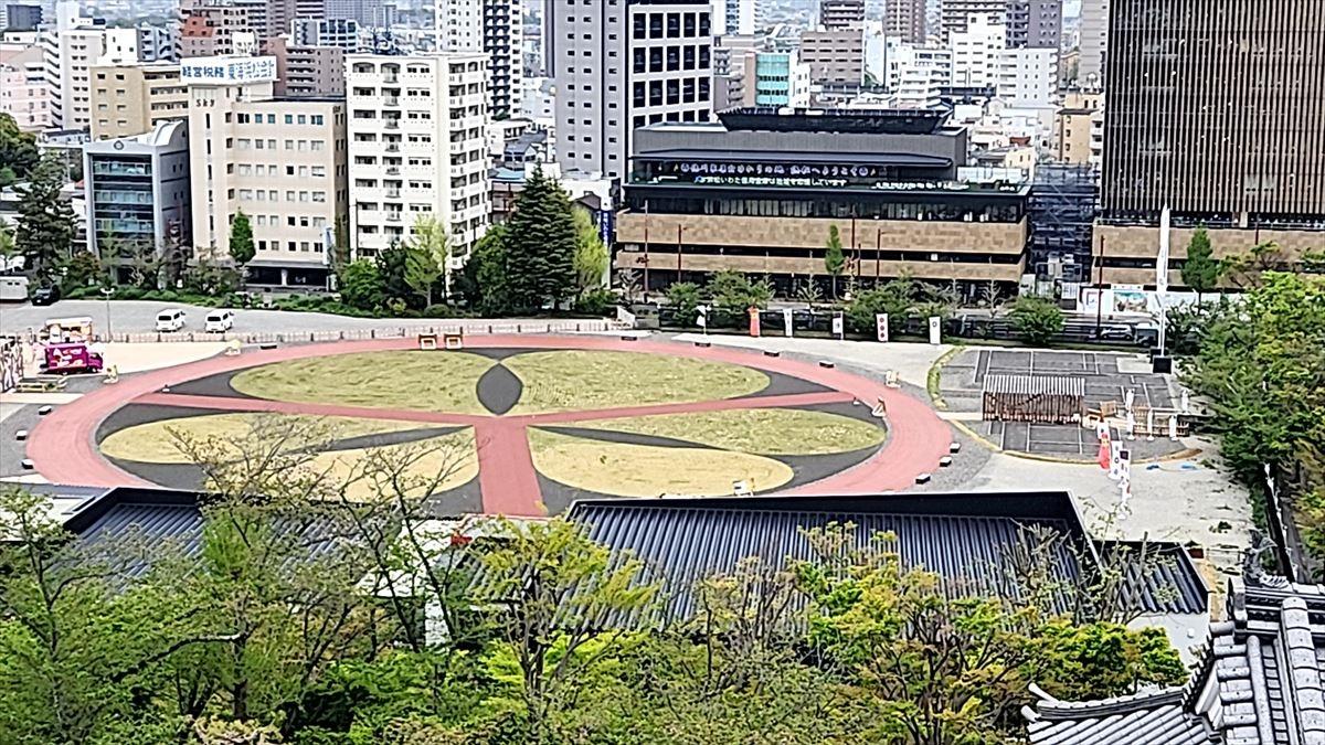 ドラマ館前の広場は葵のご紋模様 -