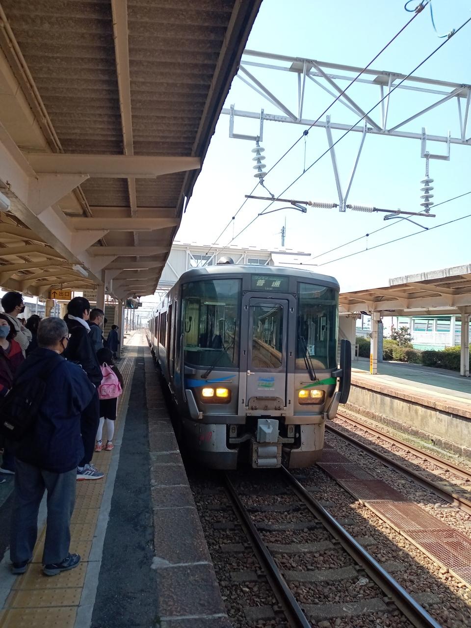 約20分遅れて乗りたいタクシーが来ました。運転手に「11時52分発の新幹線に間に合うか」と聞いたら「わからない」という回答でした。もし乗れなかったら、周囲に何もない駅に1時間10分も待つのはしんどいので、乗り合いタクシーをキャンセルします。12時台に「あいの風とやま鉄道」泊駅発の列車があり、ここから無料のシャトルバスが出ているので、その経路で富山駅に移動することにします。 -