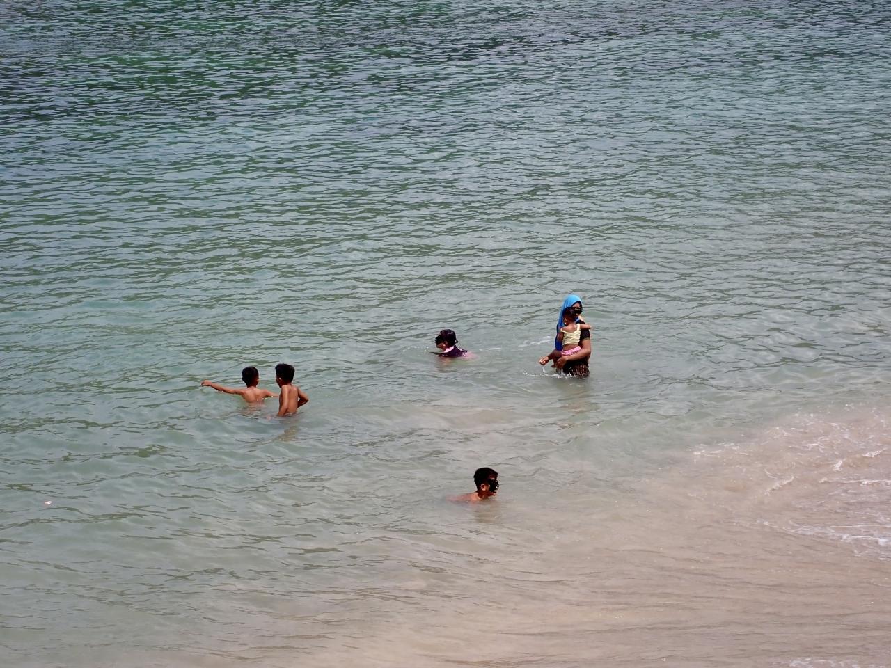 女性の人は頭を覆うヒジャブも付けて海に入っています。