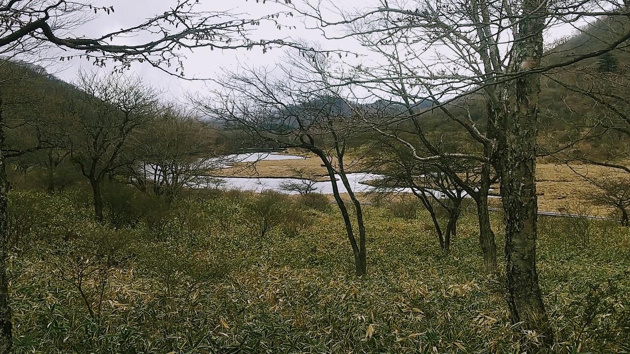 覚満淵は小さな湿原ですが、霧がかかった幻想的な写真が撮れることで有名な撮影スポットです。そのときによく被写体にされるのがこの中央にある木々で、覚満淵のシンボルツリー的な存在になっています。霧がかかっていなくても、やっぱり絵になりますね。
