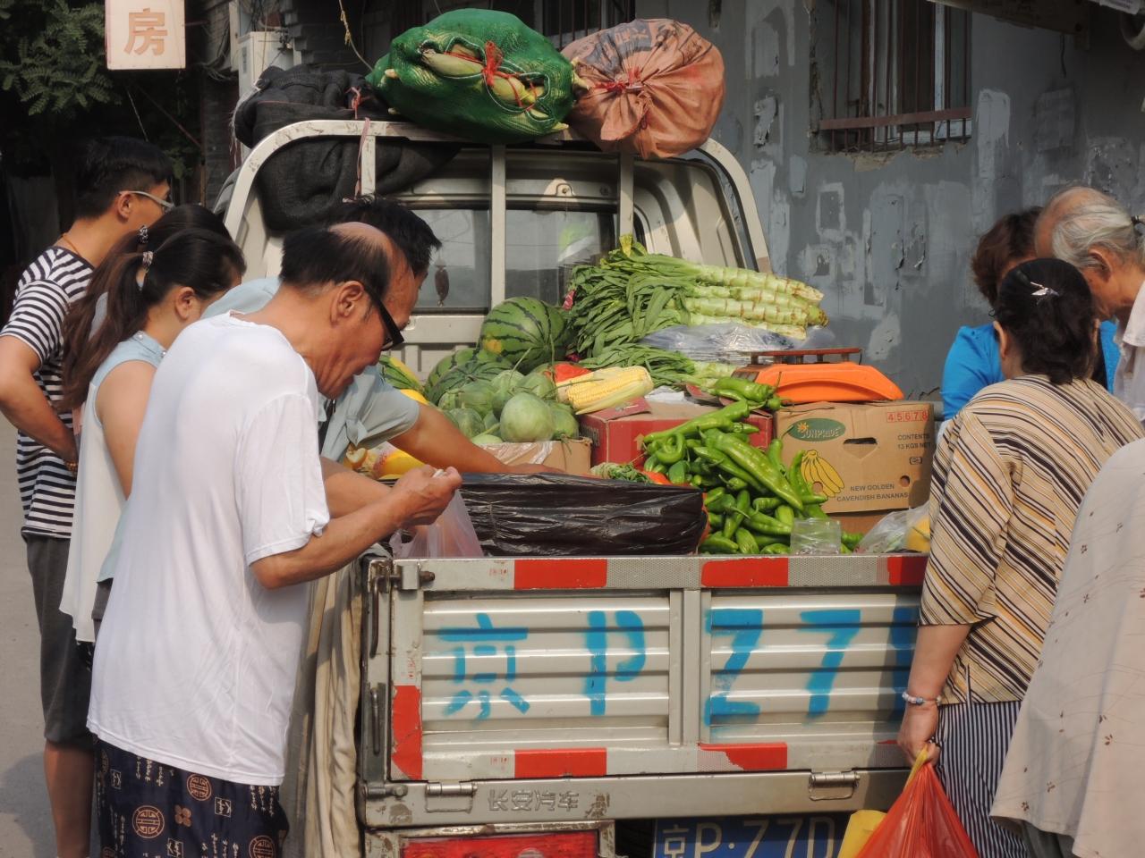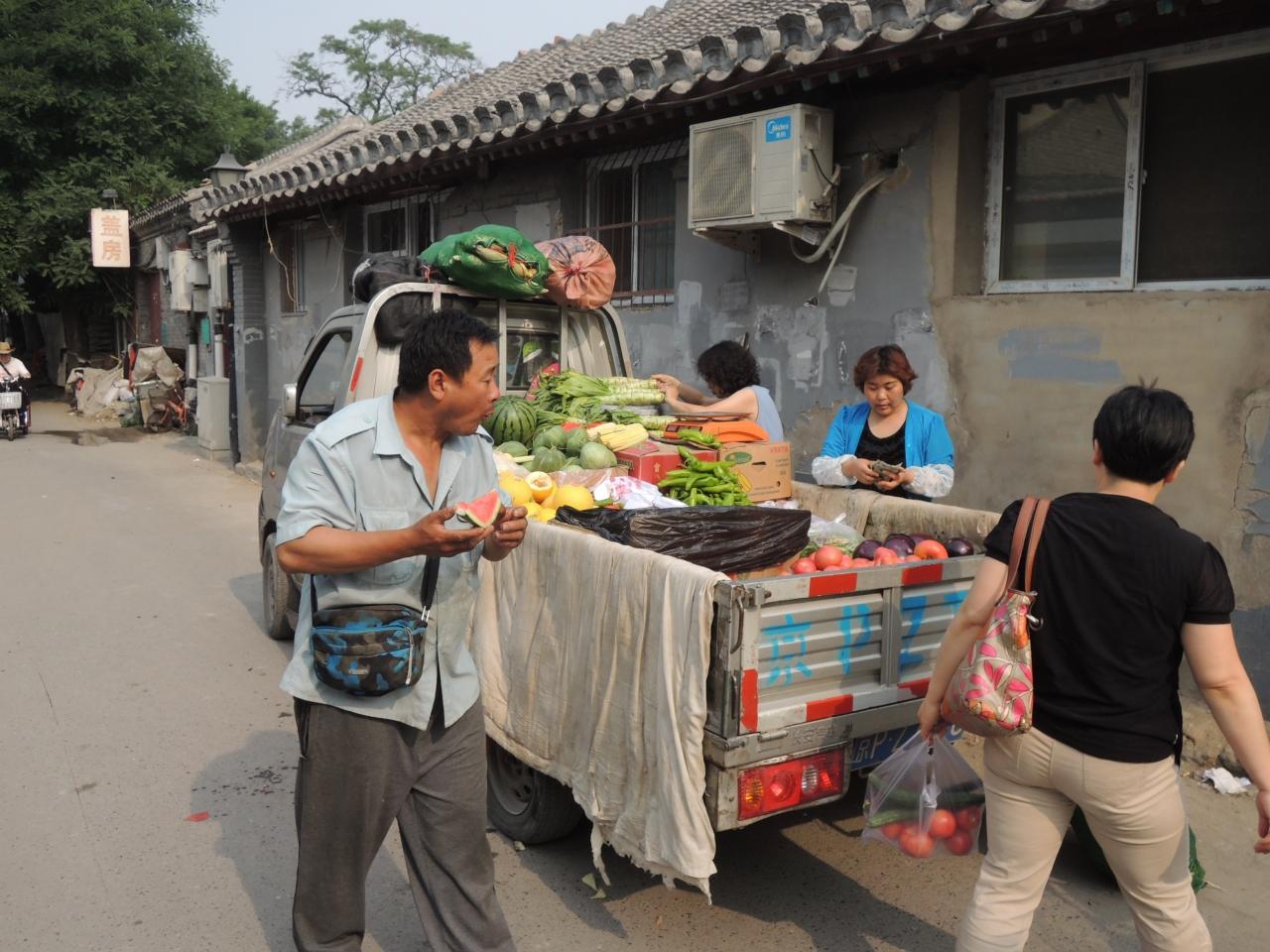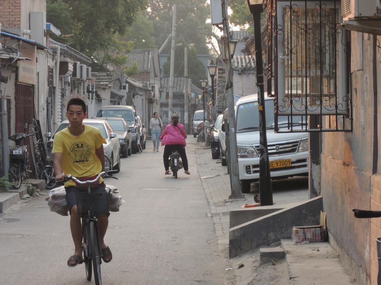 朝は営業している店も少なく人通りも少ないので落ち着いた雰囲気だ。胡同では自転車が行き交い家の前を掃除する人々など昔ながらの北京の人々の日常を垣間見ることができる。