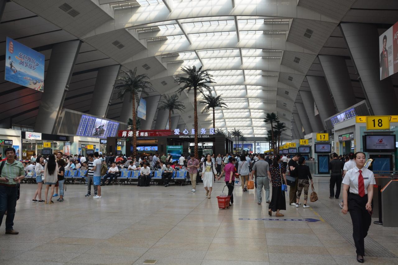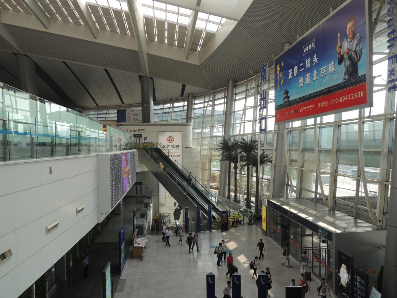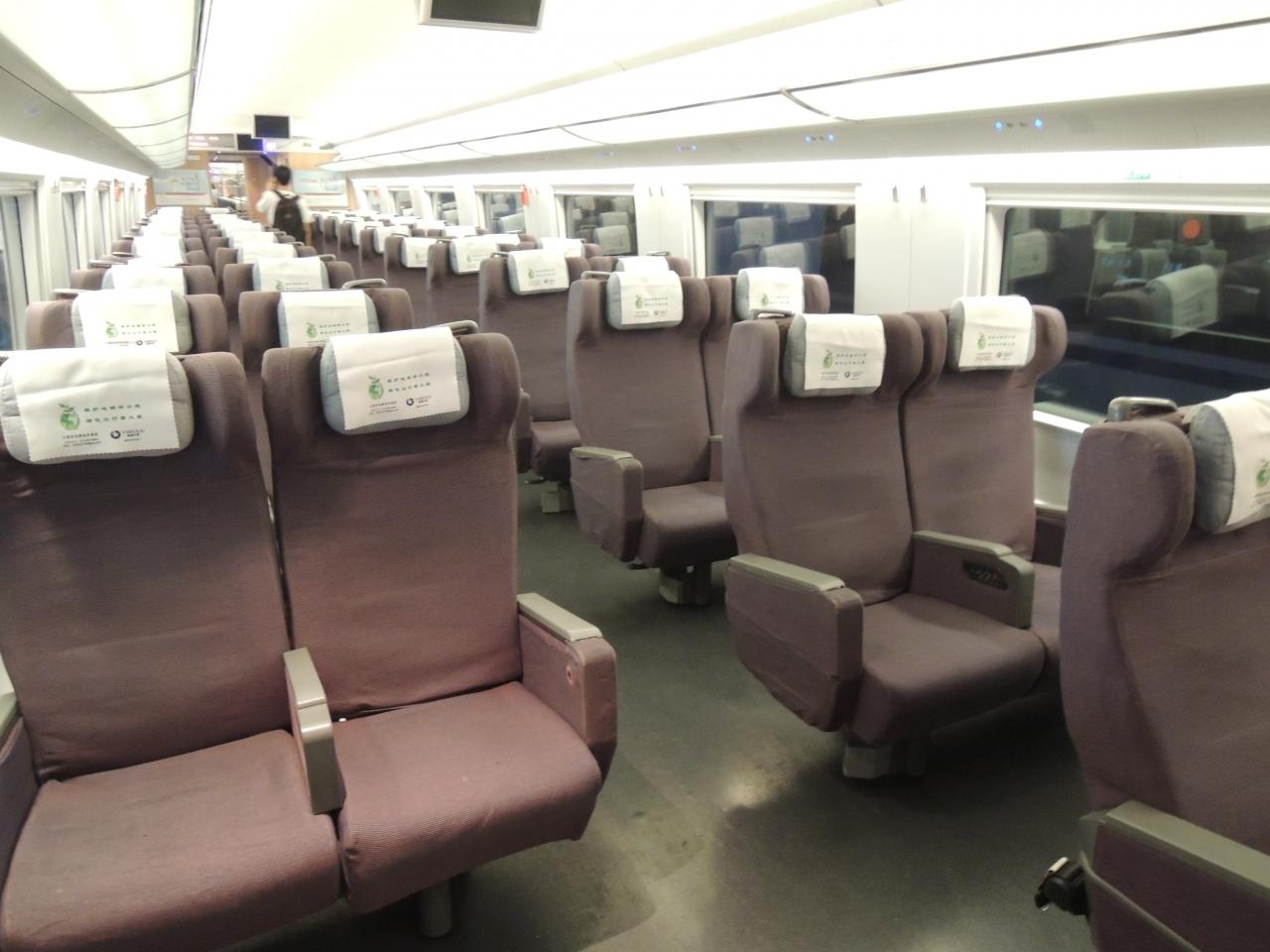 しかし開業からまだ10年も経っていないのに座席のシートはずいぶん汚い。布製のシートがヨレヨレになっているのがみすぼらしく感じさせている。日本では座席の布がめくれてくることなどあまりないのだが、中国ではほとんどの座席の布がめく入れ上がっている。座席のクッションも弱くなっていて座ると大成が若干低くなる。このような問題点は上海のリニアモーターカーや北京空港からの列車の座席でも感じたことだ。とにかく座席に関しては中国製の粗悪さが際立っている。中国製の問題点はやはり耐久性だ。