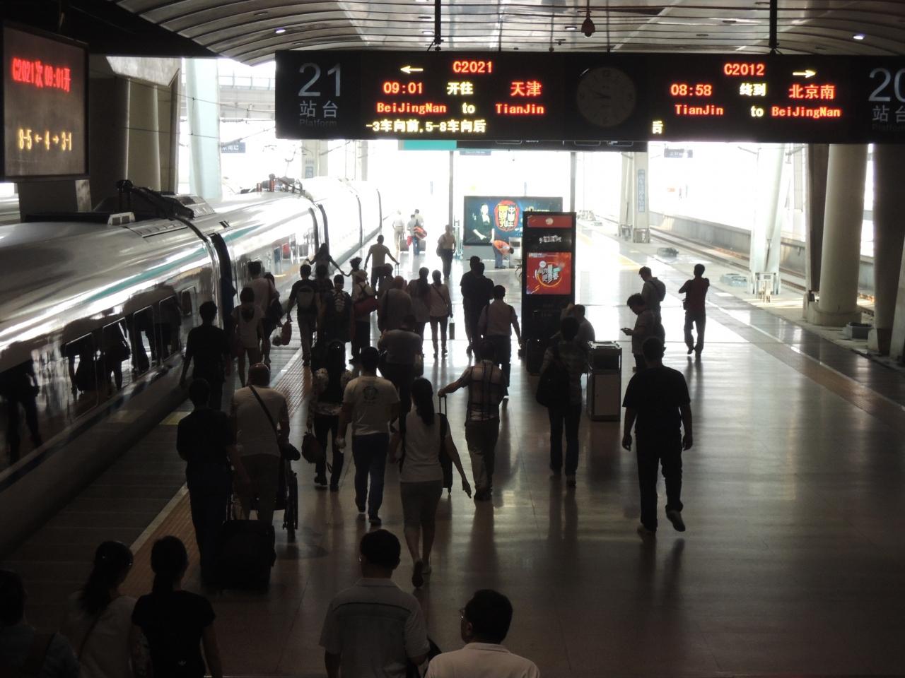 天津までの列車は時速300キロで運転され所要35分で到着する。途中の停車駅はなくノンストップ運行だ。 -