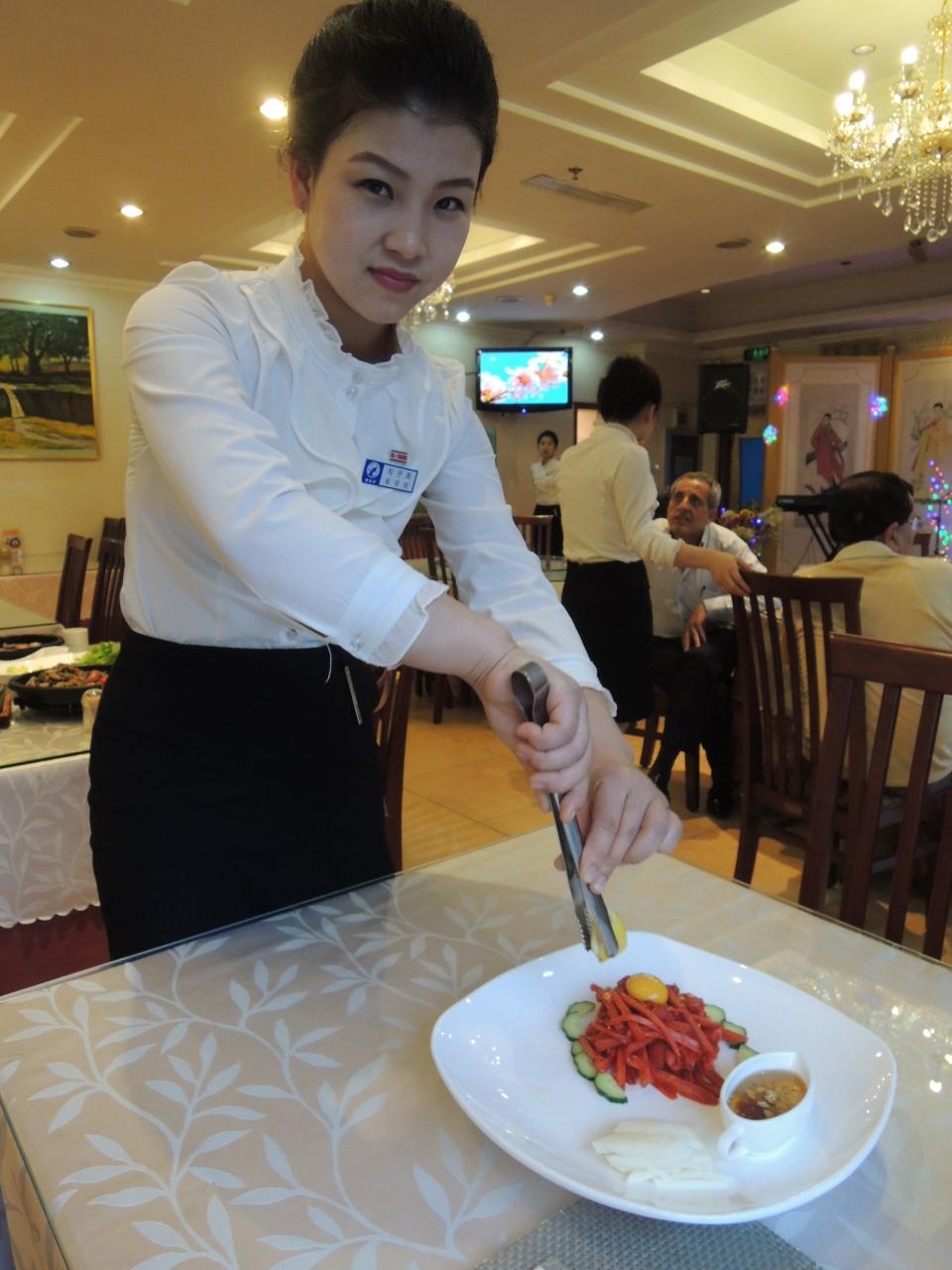 値段もそれほど高くない。松茸ビビンバとユッケを注文することにした。従業員はみんな北朝鮮人。