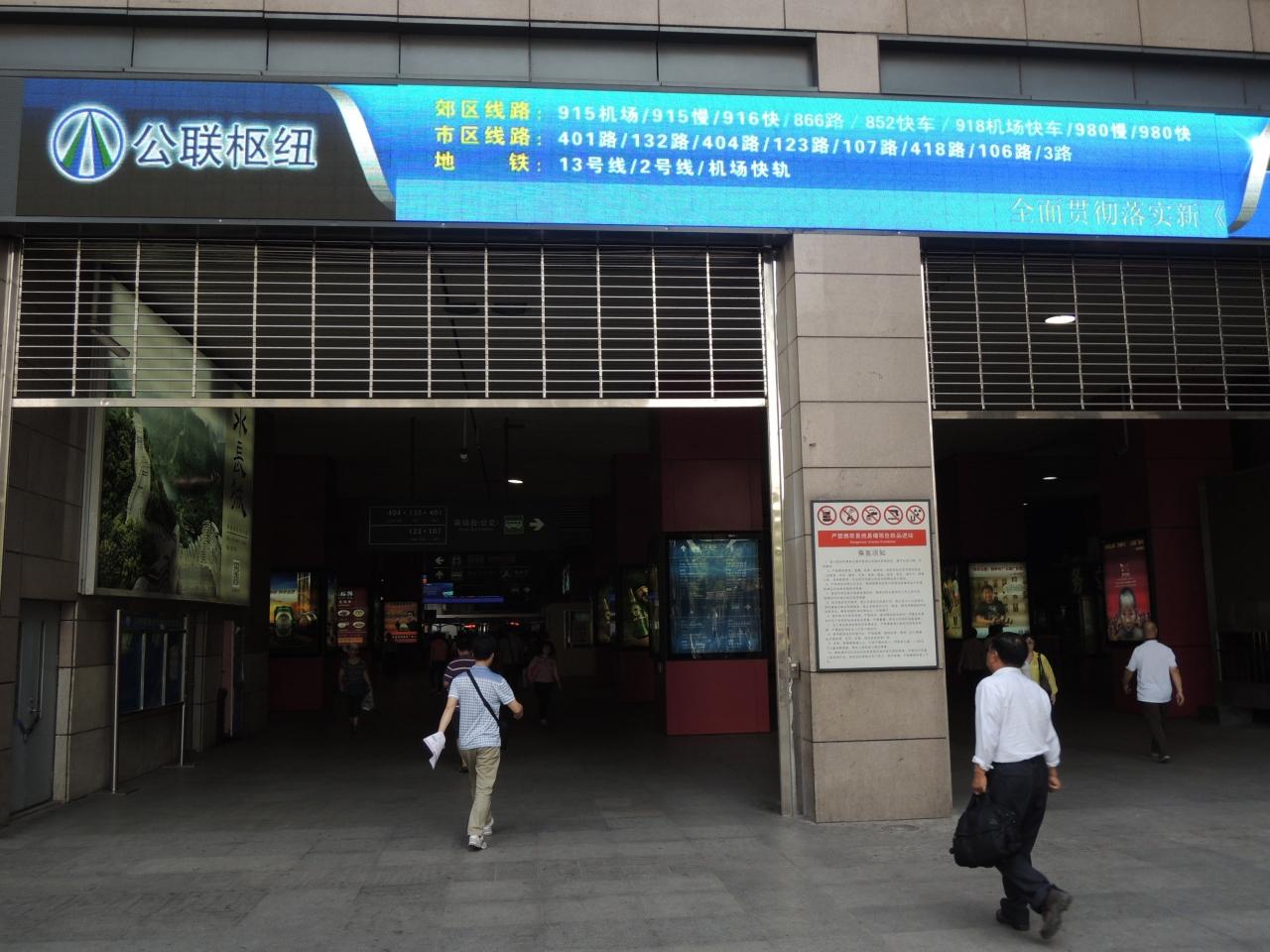 地上に出たところの巨大なバスターミナルがある。目的の慕田峪長城行きのバスは少し外れの屋外の乗り場から出るという情報を得ている。しかし結果として目的のバスは見つからなかった。一日二本しかないようなバスだ。ガイドブックに書かれていたバスの番号の乗り場は見つかった。しかしその番号のバスは目的地が違うようだ。また出発予定時刻の7時になってもその違う目的地のバスがやってくる気配がない。平日は観光客がいないので運行されていないのだろうか。しかたない。今日は慕田峪長城へ行くのをあきらめることにした。 -