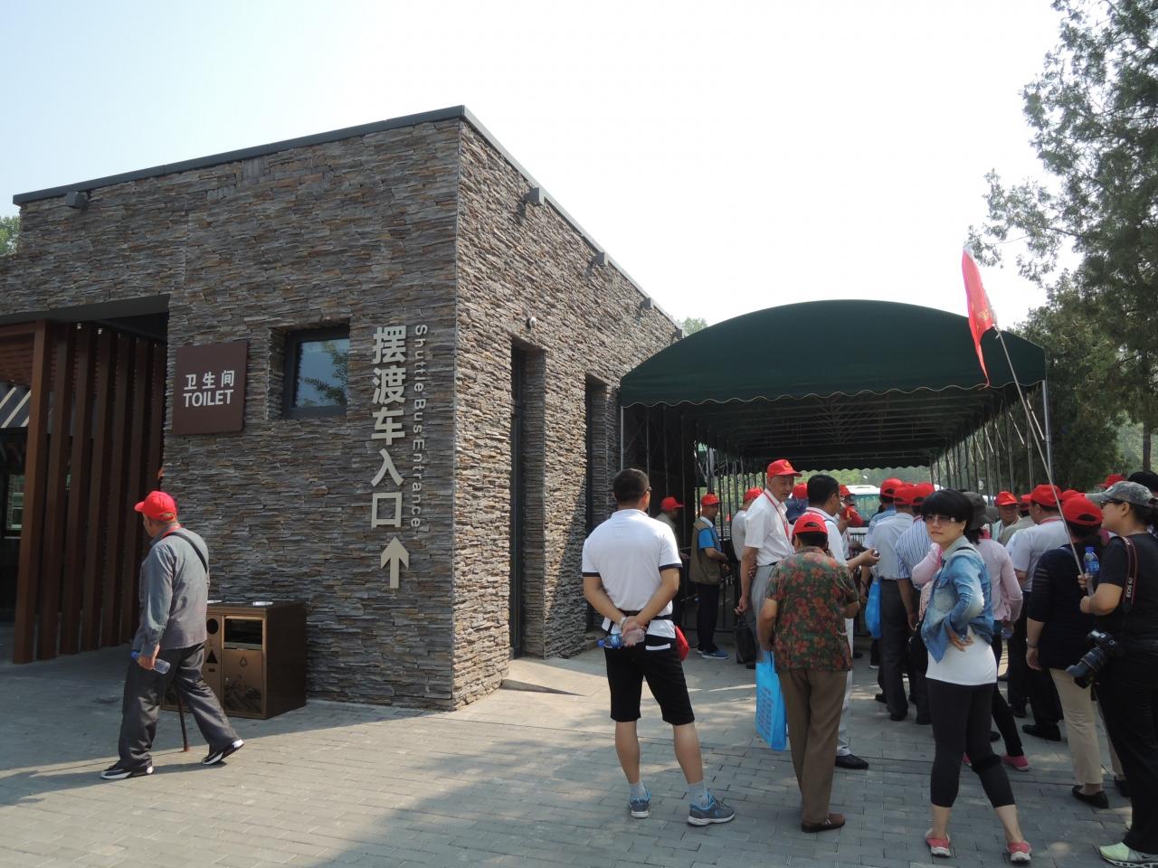 駐車場には2時間後の11時に戻ってくることになった。ゲートからシャトルバスでリフトの乗り場まで向かうことになる。ゲート周辺はお土産物からファーストフード店まで何でも揃っている。交通が不便なので八達嶺に比べ不便でマイナーなポイントかと思っていたが、そんな雰囲気はみじんもなく一大観光地化していた。ただ朝早いので観光客はまばらだ。