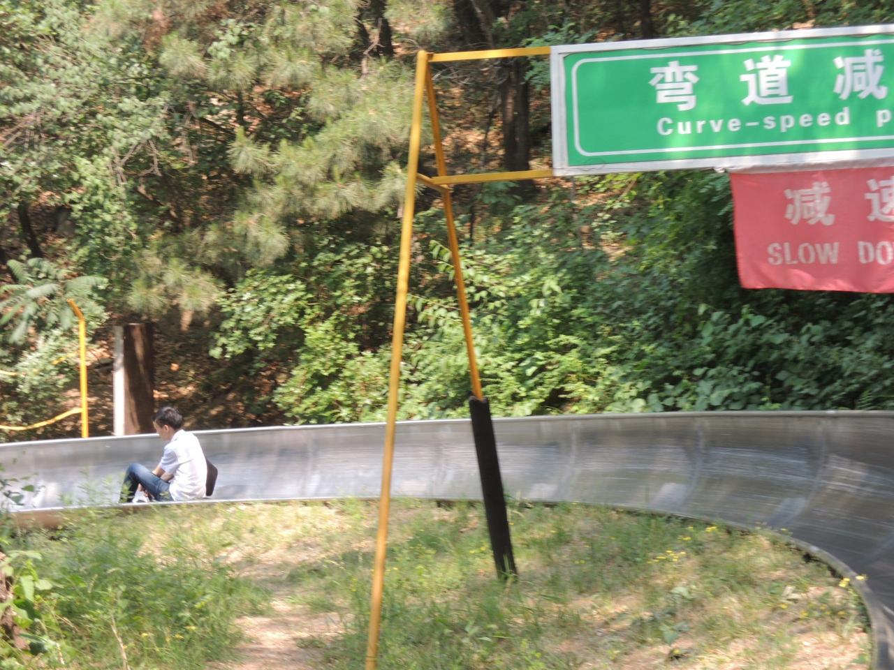 懐柔行きバスは高速を走り、1時間半ほど走って柔懐市内に入り、明珠広場という停留所で下車した。ここでタクシーを拾うことになる。バスを降りたら早速タクシー運転手が声をかけてきた。タクシーは片道でもよかったが運転手のおばちゃんが往復にしろと営業してきた。タクシーと行っても白タクだ。でも真っ白のトヨタカムリの新車で快適に移動できそうな車だ。値段は片道50元。慕田峪頂上まで距離は20キロあるが中国の運転手はあまりむちゃくちゃな値段を言ってこないので交渉はスムーズに進む。確かに帰りの足は不確かなので往復するのもいいだろう。運転手は待ち時間を少なくしたいようでリフトと滑り台を利用するように進めてきた。歩いて登るとかなり時間のロスになる。この観光地にそれほど思いがあるわけではなく、一通り見たら速く北京に戻りたいので運転手にいわれるがままリフトと滑り台のチケットを購入した。 -