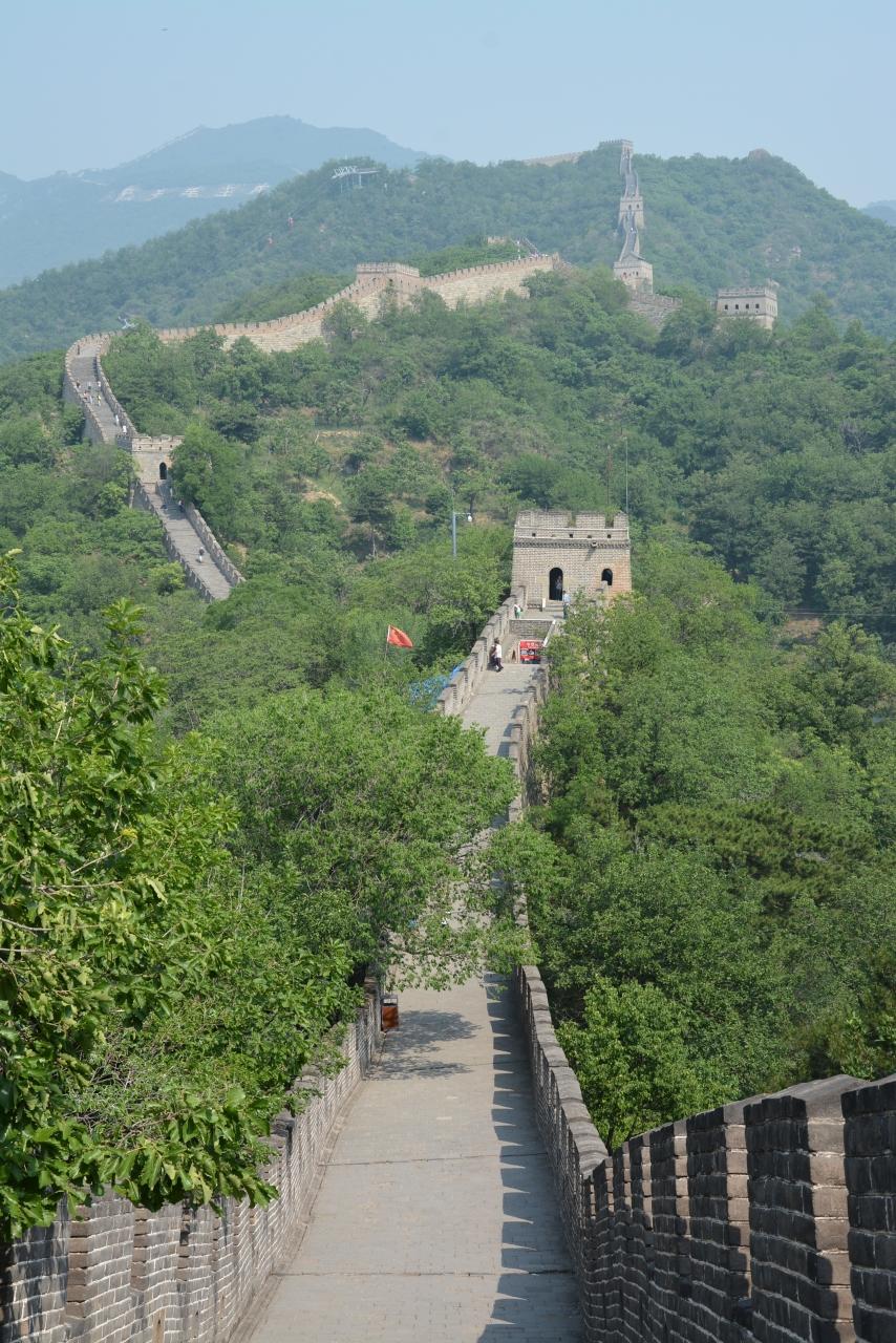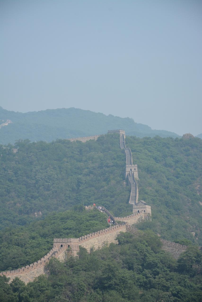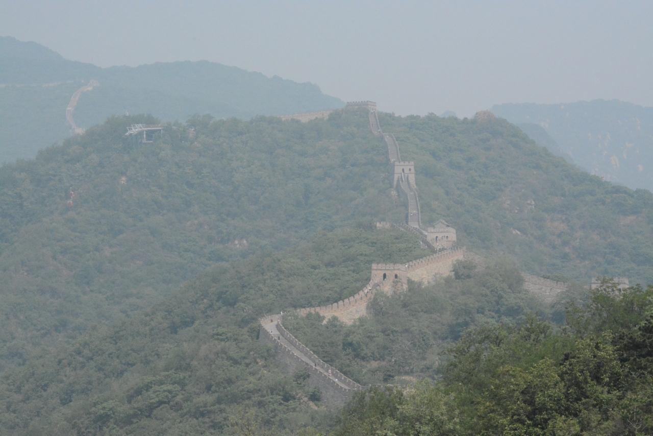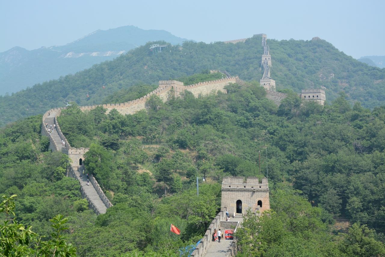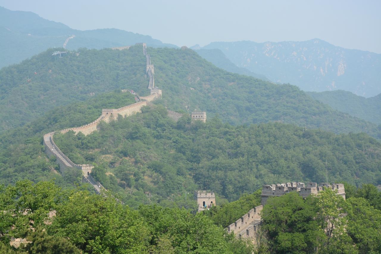 慕田峪長城は緑が多く、空は青空もうっすら見えてなかなか鮮やかな眺めで見応えがある。朝早い時間だからか、リフトで登る人が少ないからかリフトを降りた辺りはほとんど観光客がいなかった。万里の長城というと人でごった返しているというイメージだが、ここは別世界だ。