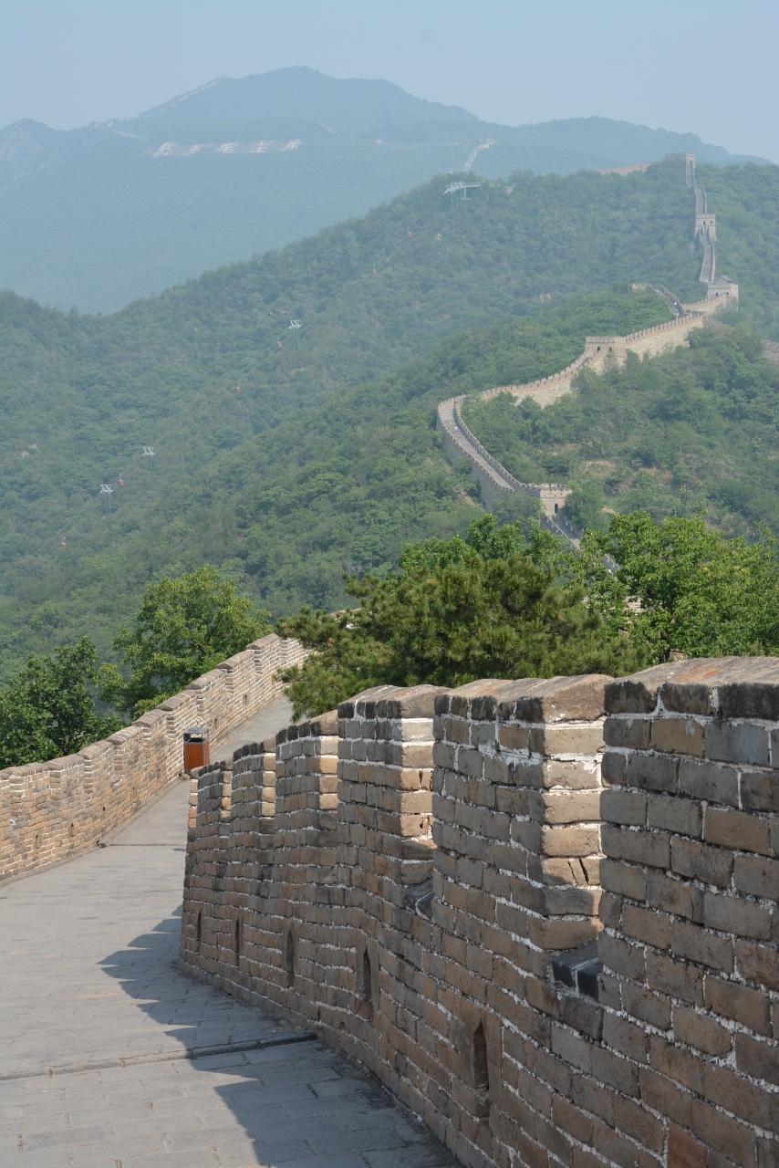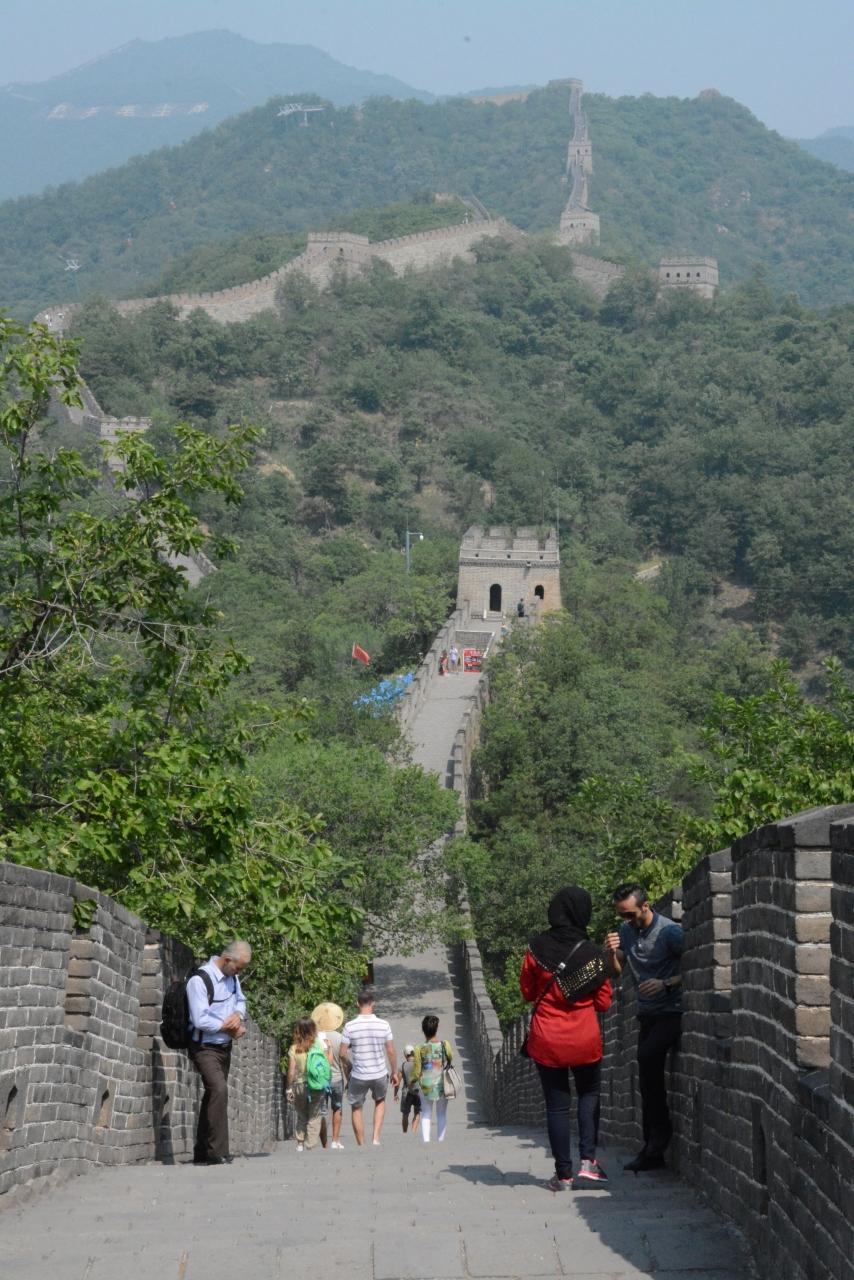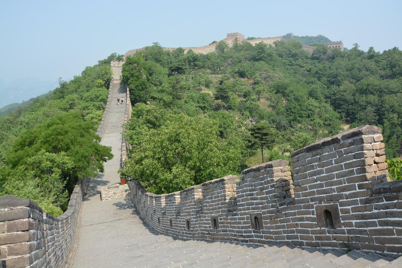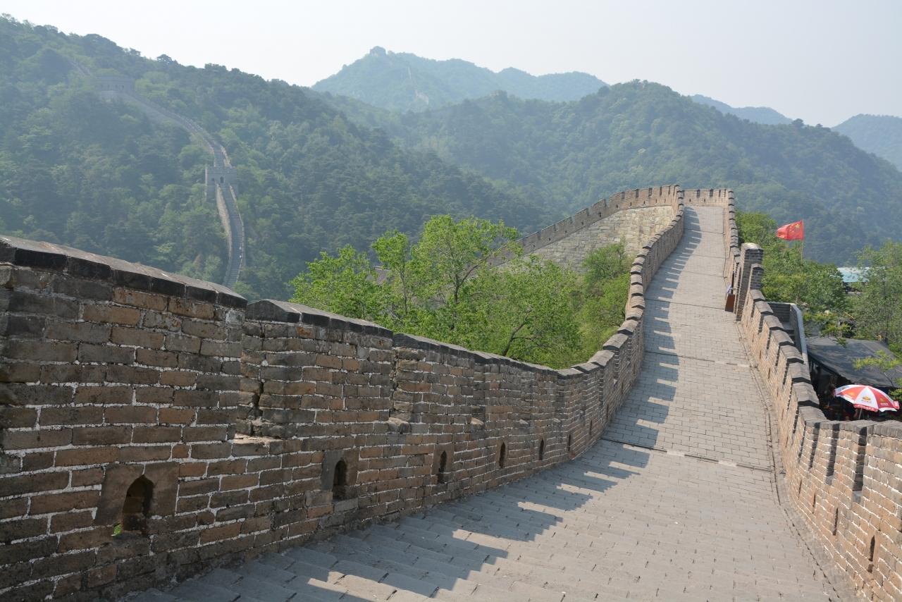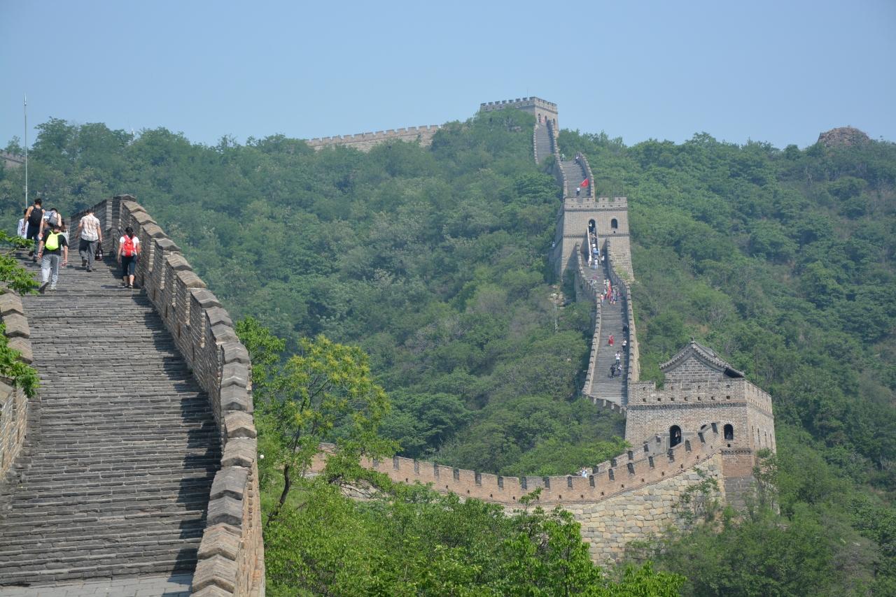 慕田峪長城は緑が多く、空は青空もうっすら見えてなかなか鮮やかな眺めで見応えがある。朝早い時間だからか、リフトで登る人が少ないからかリフトを降りた辺りはほとんど観光客がいなかった。万里の長城というと人でごった返しているというイメージだが、ここは別世界だ。