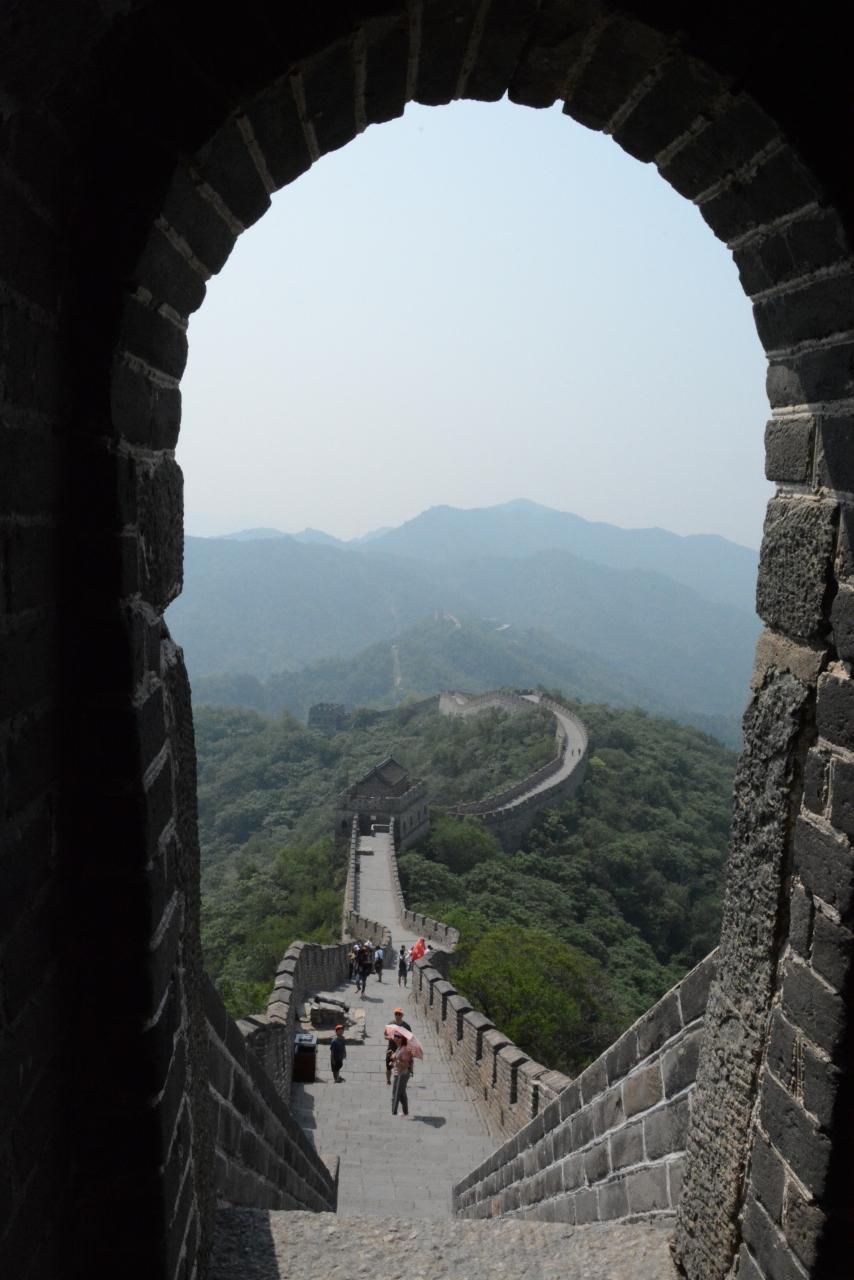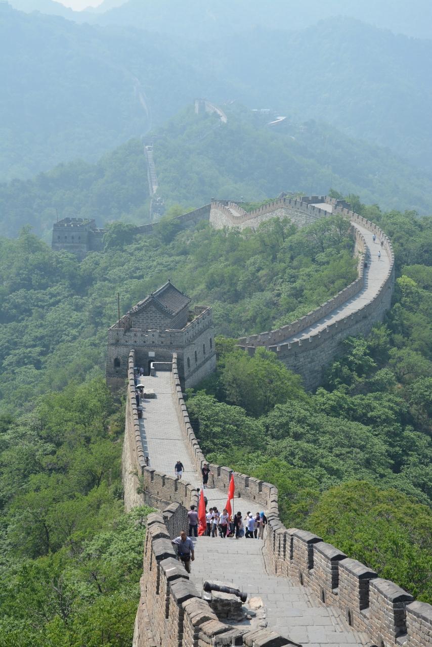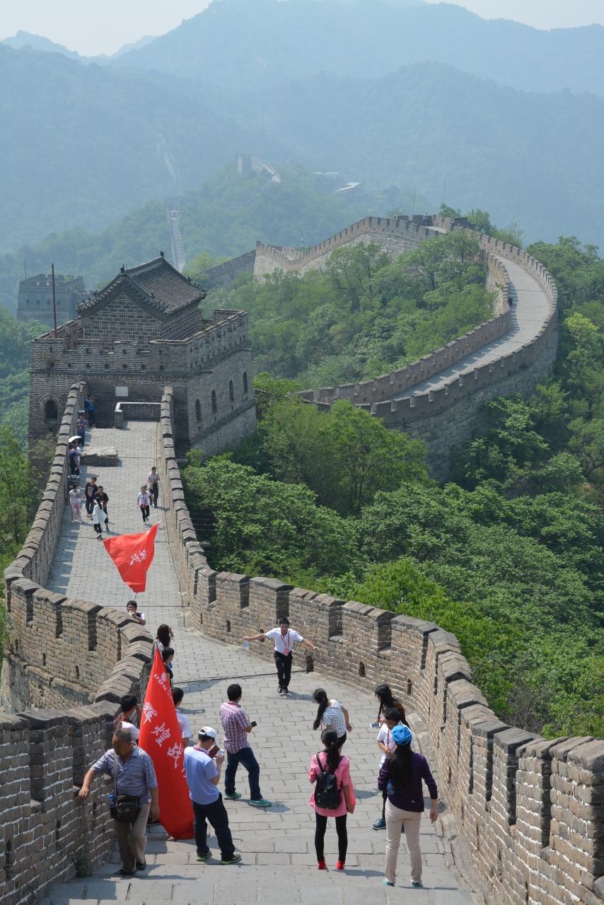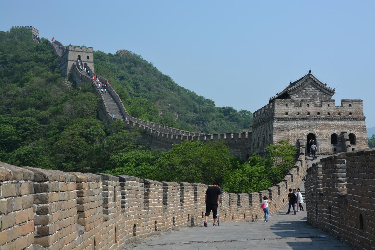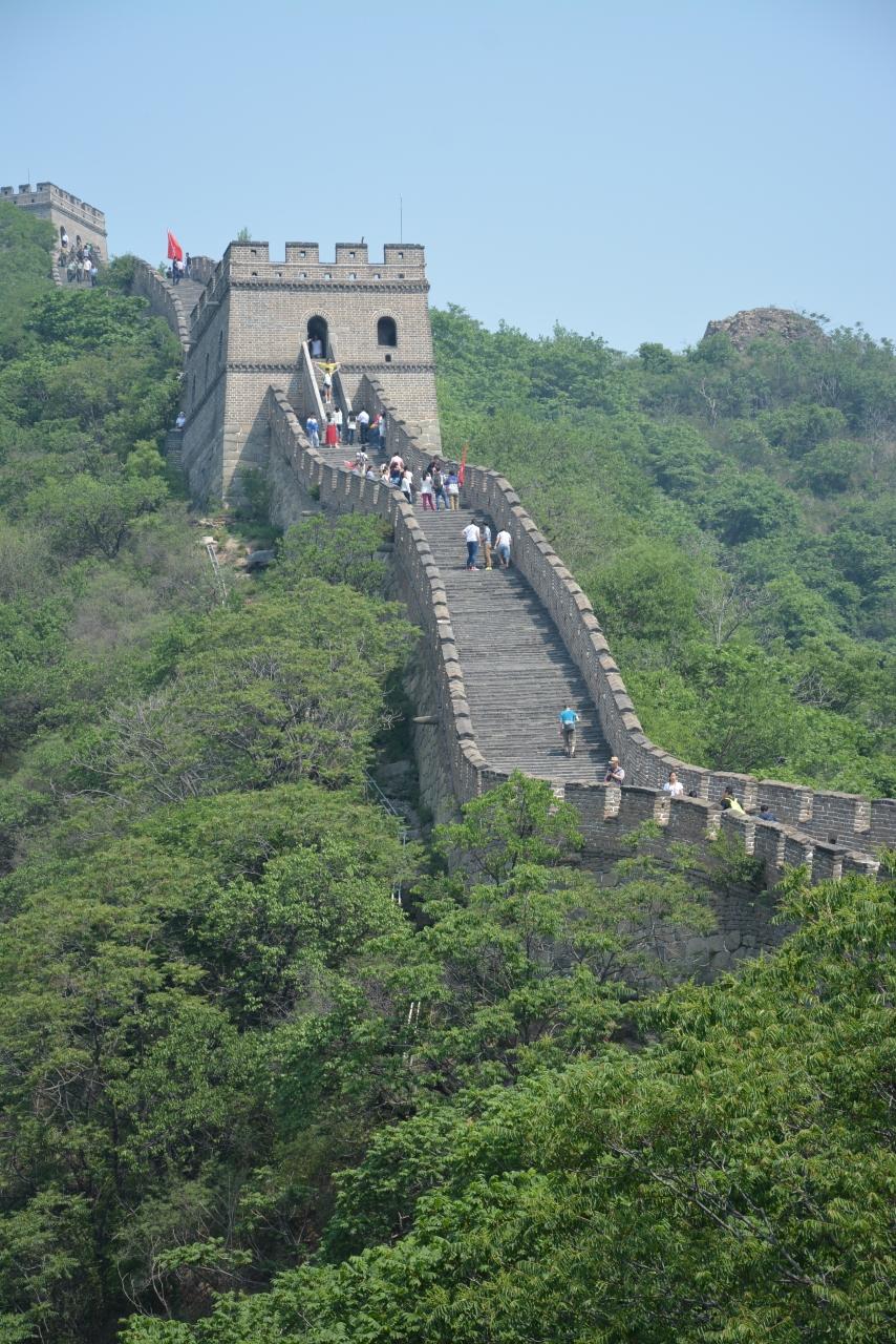 慕田峪長城は緑が多く、空は青空もうっすら見えてなかなか鮮やかな眺めで見応えがある。朝早い時間だからか、リフトで登る人が少ないからかリフトを降りた辺りはほとんど観光客がいなかった。万里の長城というと人でごった返しているというイメージだが、ここは別世界だ。