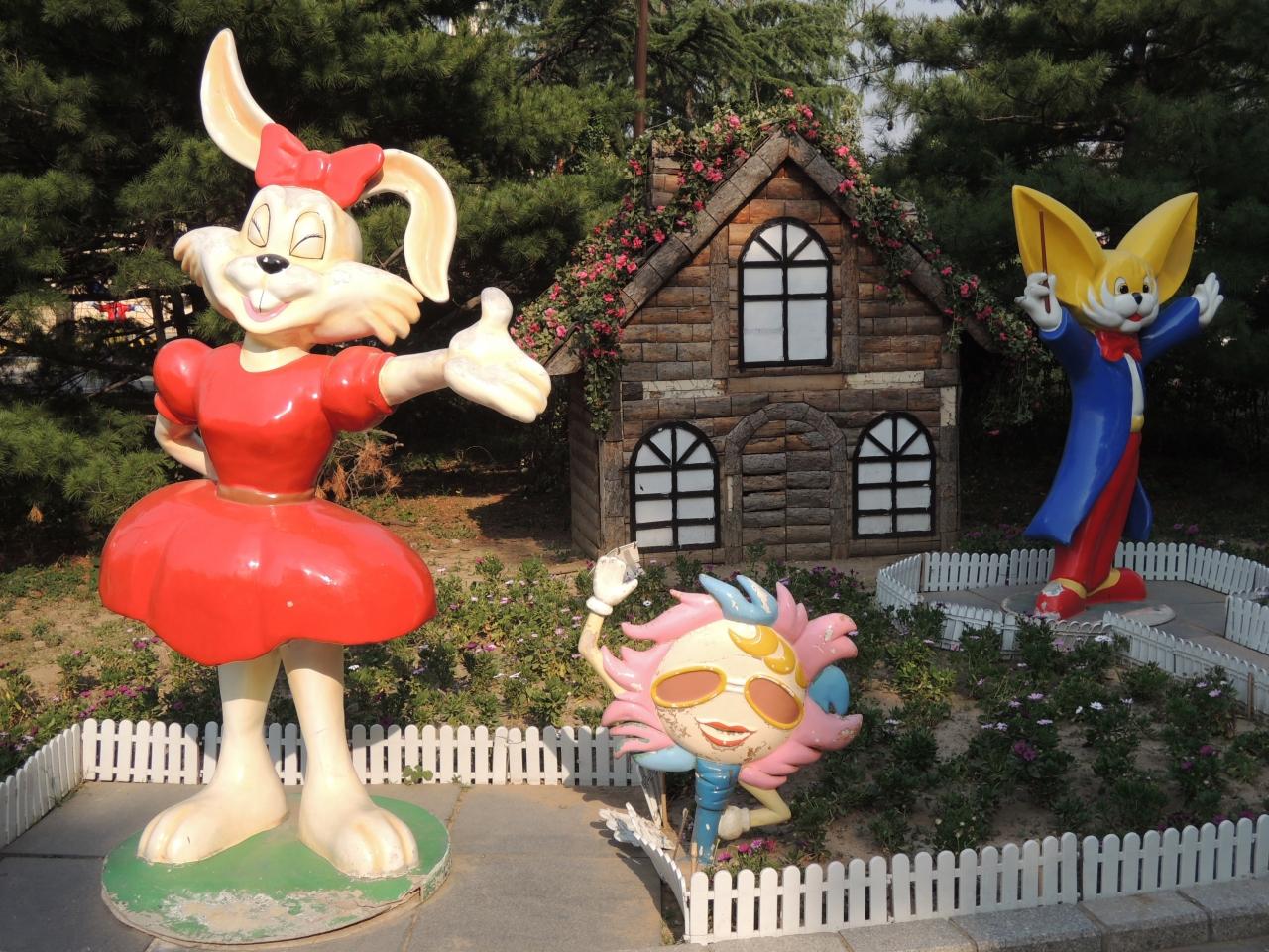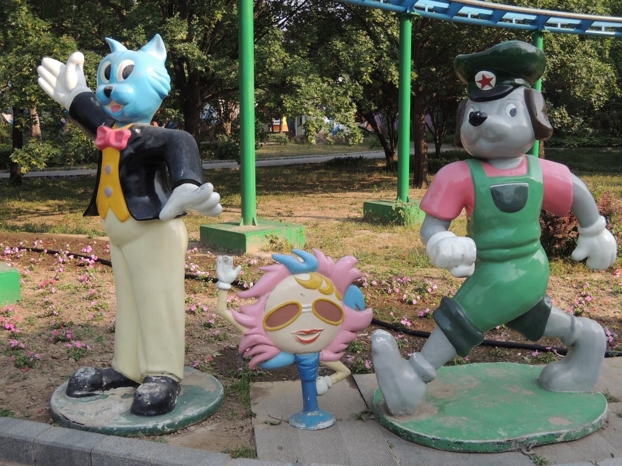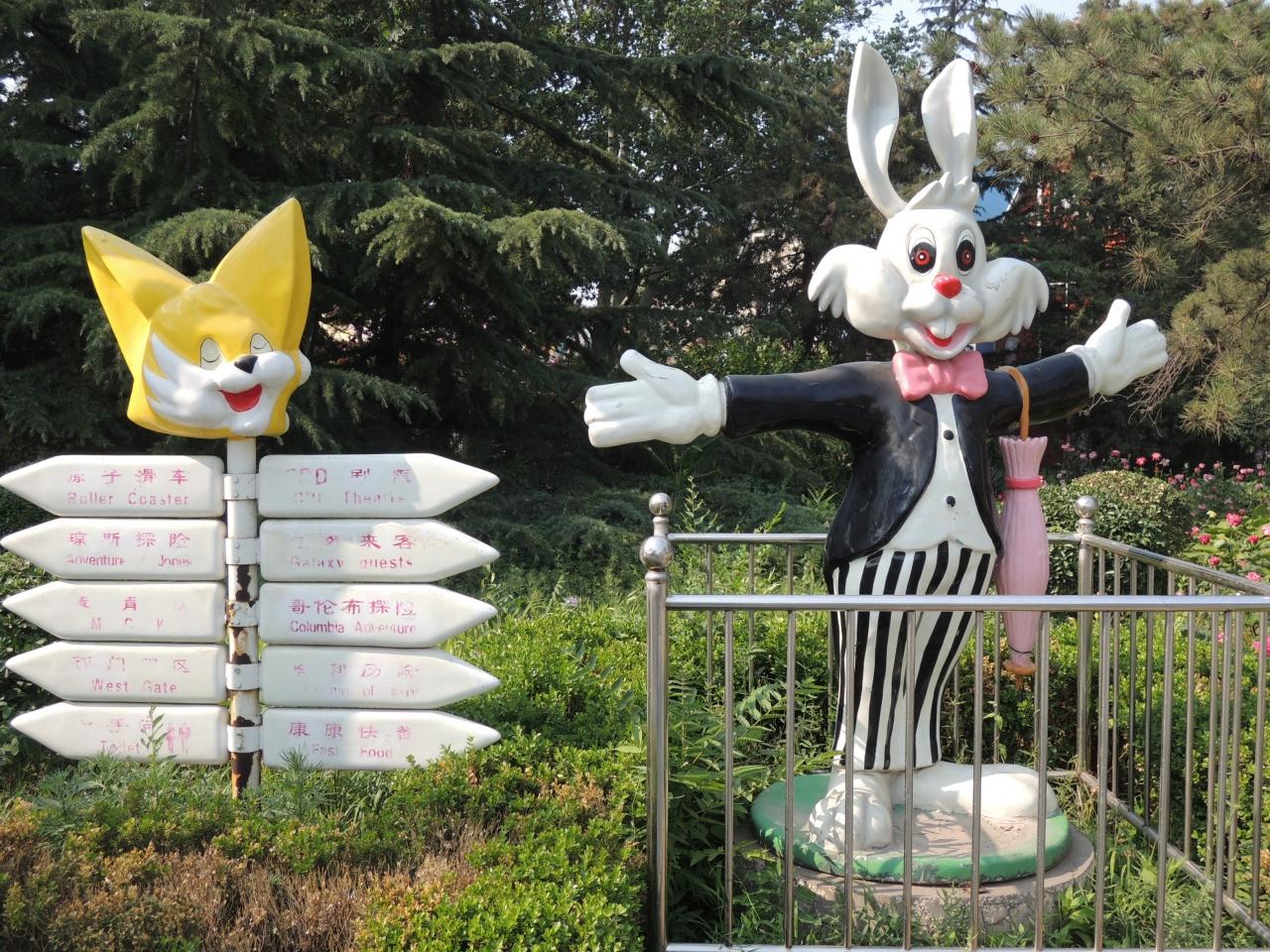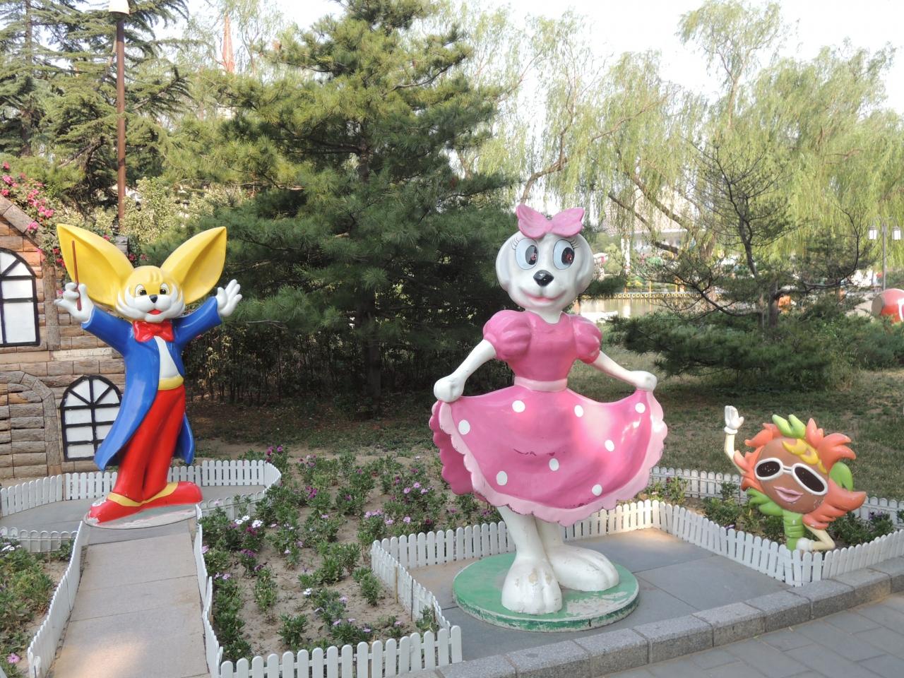この遊園地は怪しいキャラクターで有名だったが北京オリンピックを機に一掃されてしまった。ミッキーマウスやドナルドダック、ドラえもんなどいかにもというキャラクターは海外から批判され姿を消してしまった。とはいえ怪しいキャラクターは数は減ったものの今でも至る所に残っている。
