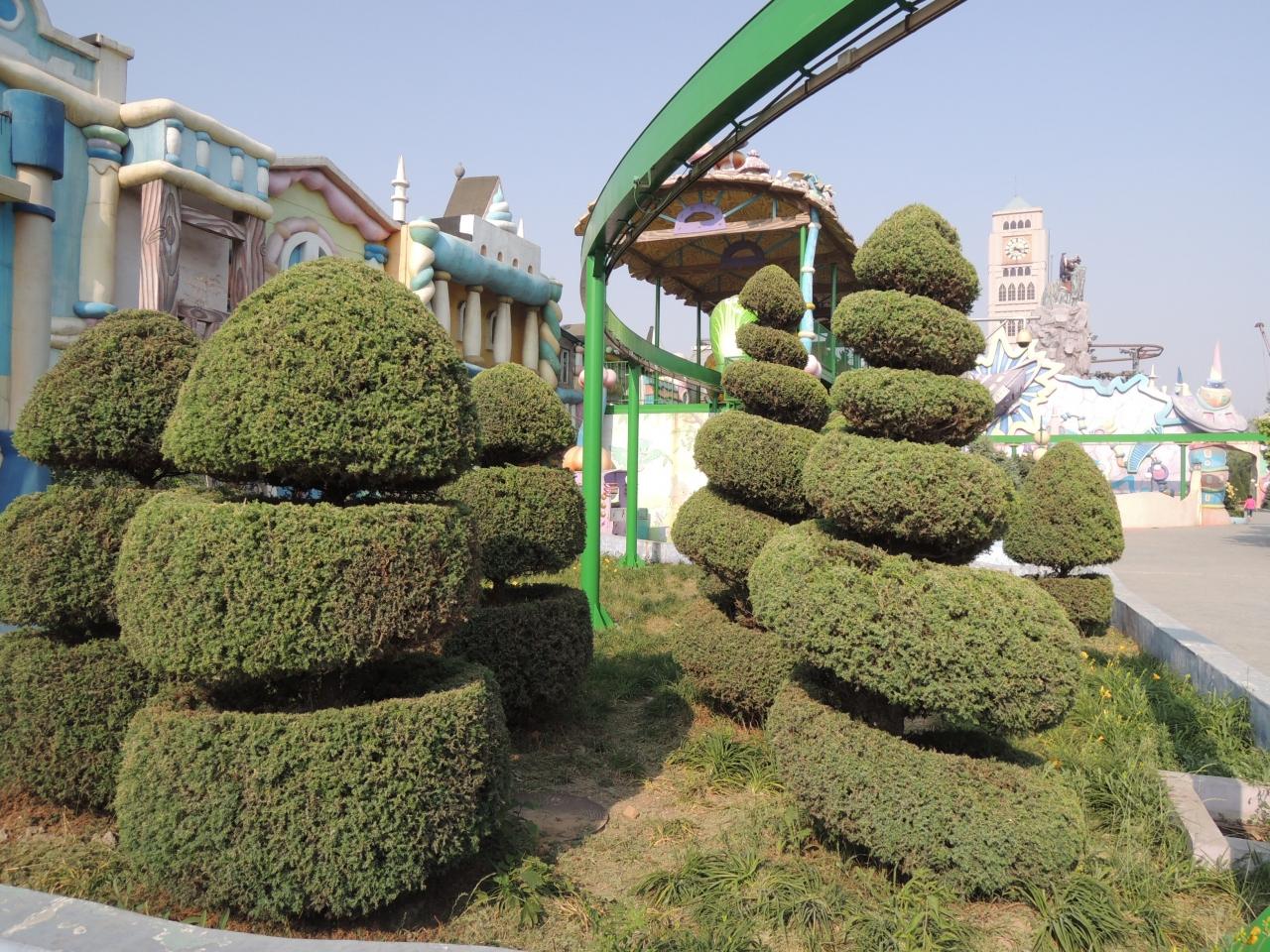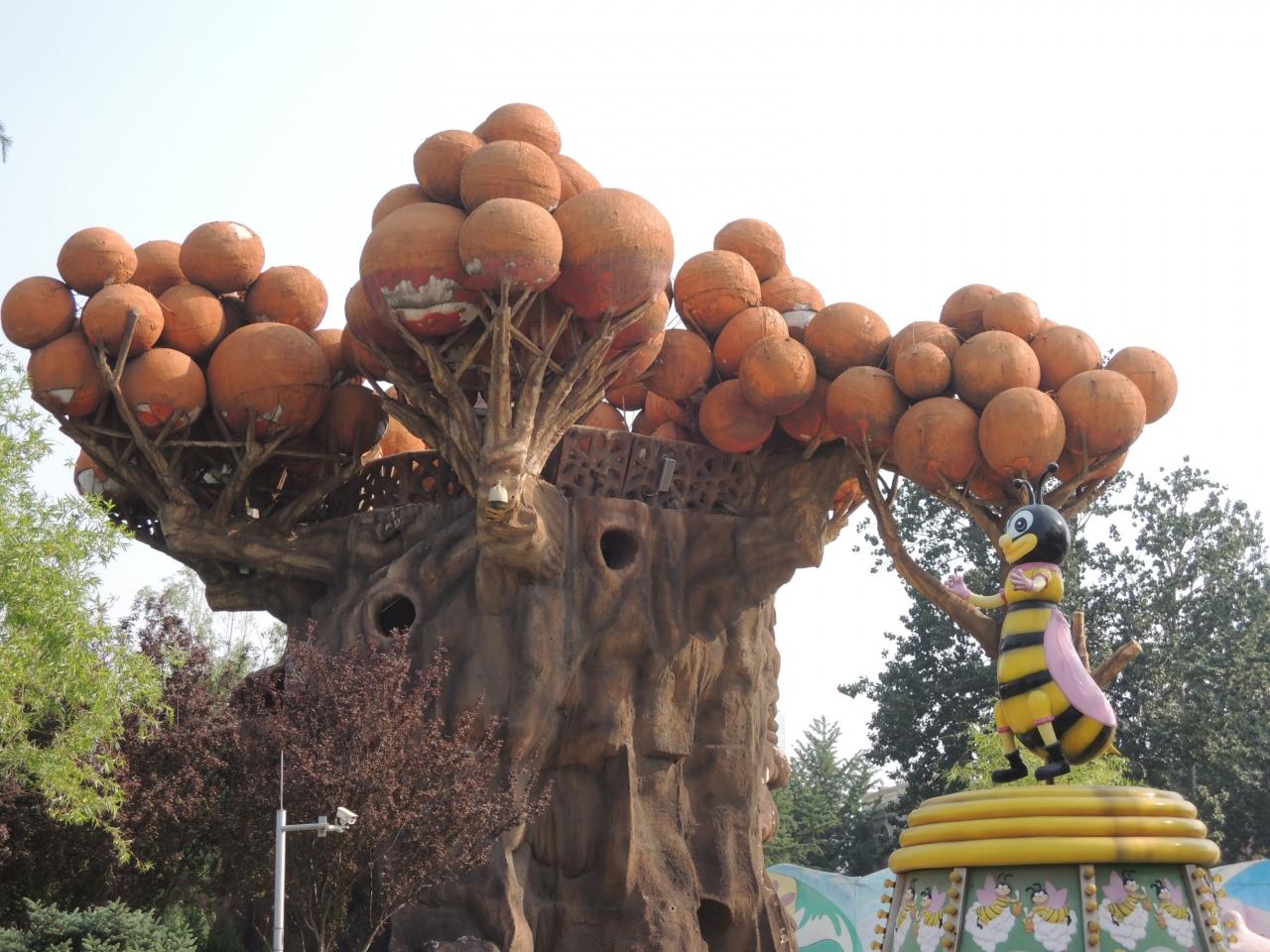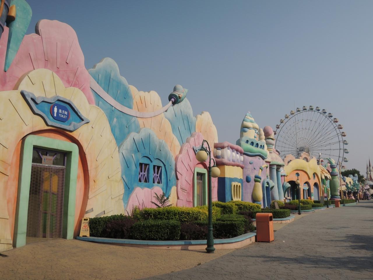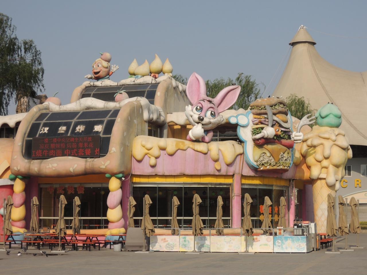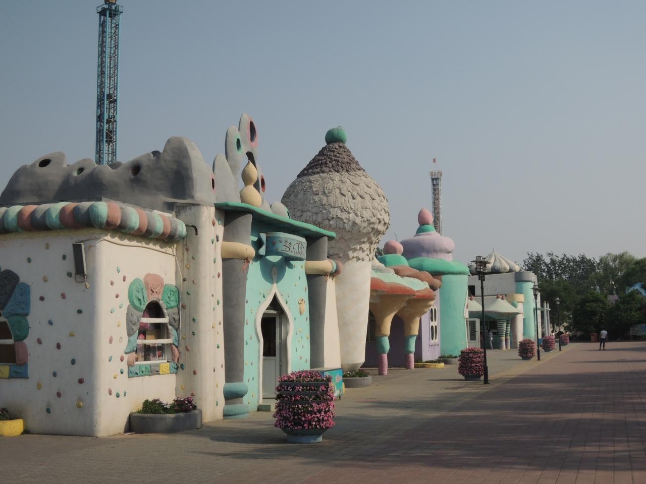 この遊園地は怪しいキャラクターで有名だったが北京オリンピックを機に一掃されてしまった。ミッキーマウスやドナルドダック、ドラえもんなどいかにもというキャラクターは海外から批判され姿を消してしまった。とはいえ怪しいキャラクターは数は減ったものの今でも至る所に残っている。