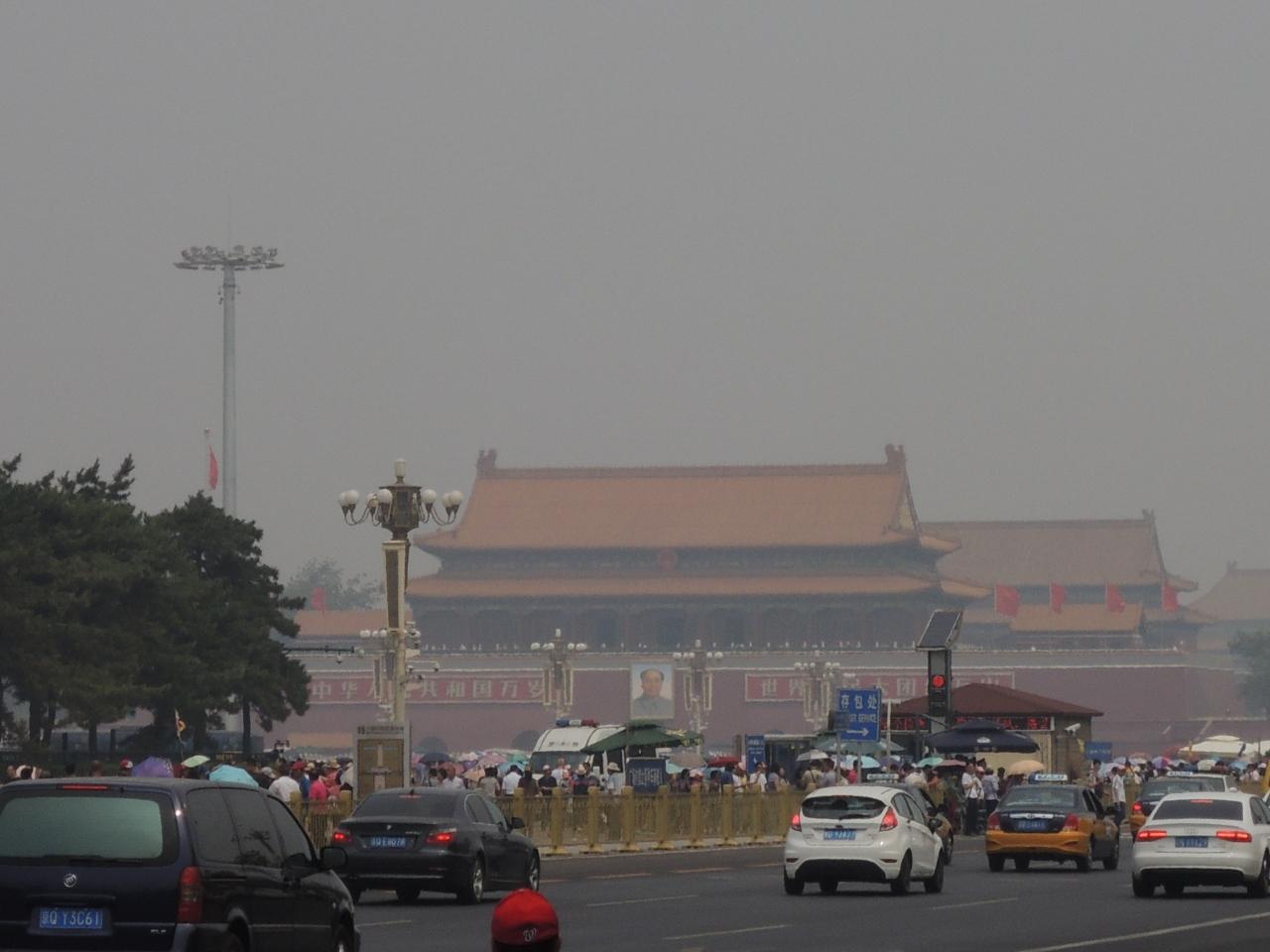 前門の南側は歩行者天国の前門大街になっている。前門の近くから天安門をチラ見してみた。今回は天安門の前まで行く気はないが、北京に来て天安門を見ずに帰るの味気ない。 -