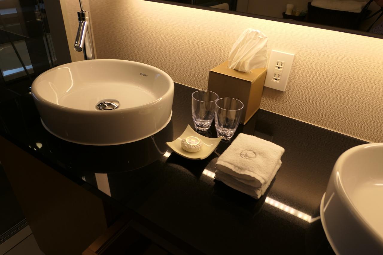 浴室は広く、独立したシャワールームも連なる。