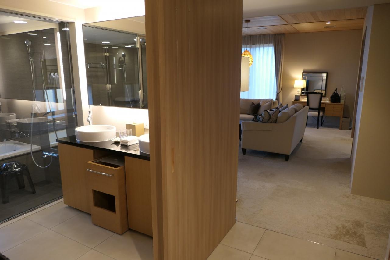 スイートルームは寝室とリビングルームからなる。