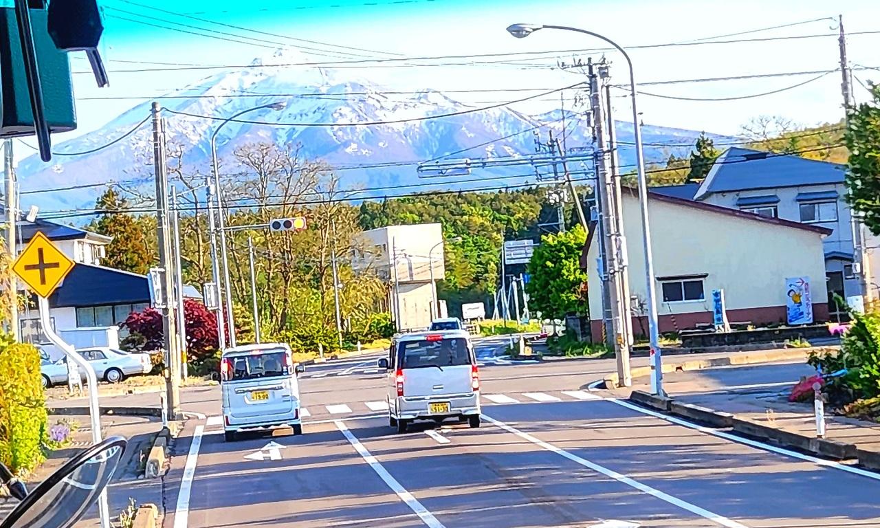 17:02 正面に【追分け山】の『岩木山』が見えます。これから麓の『鰺ヶ沢温泉』のホテルへ向かいます。⑦に続きます。