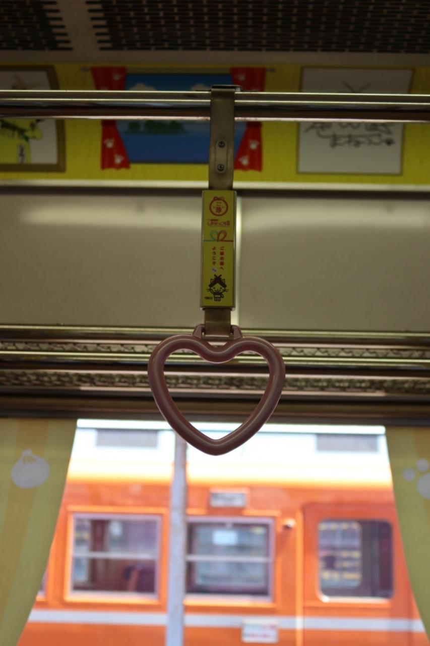 1両目は全面ピンクで2両目はレトロなデザインの車両でした