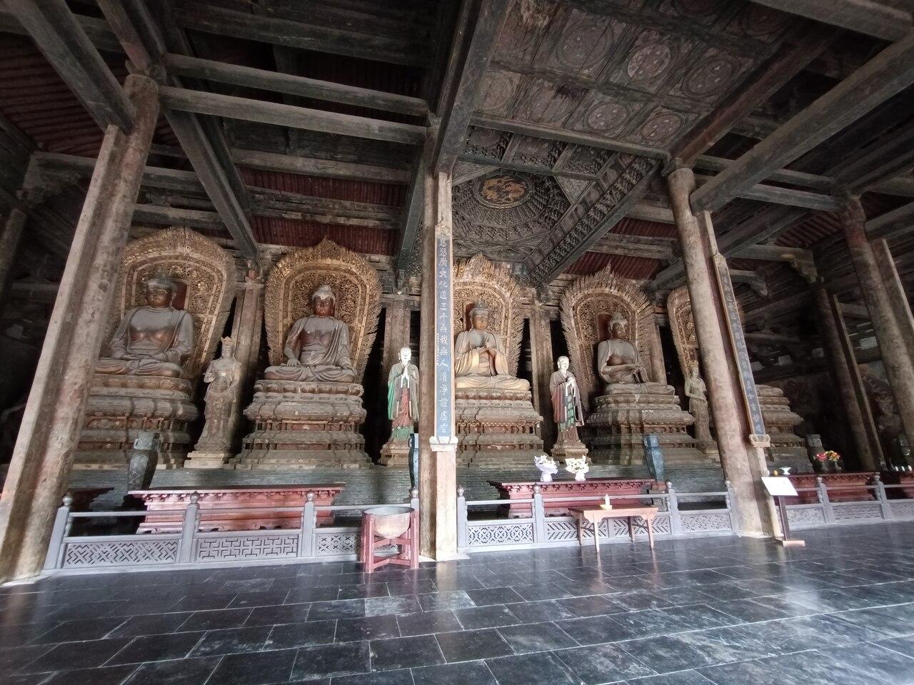 遼代1062年建立、金代1140年再建の大雄宝殿だが、5つの仏像は全て明代に作られたもの。