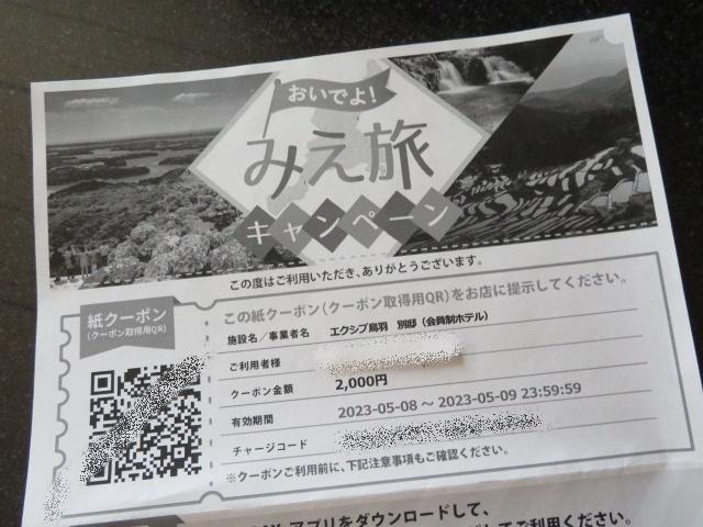 最後にみえ旅のクーポンをスマホに取り込みチェックアウト
