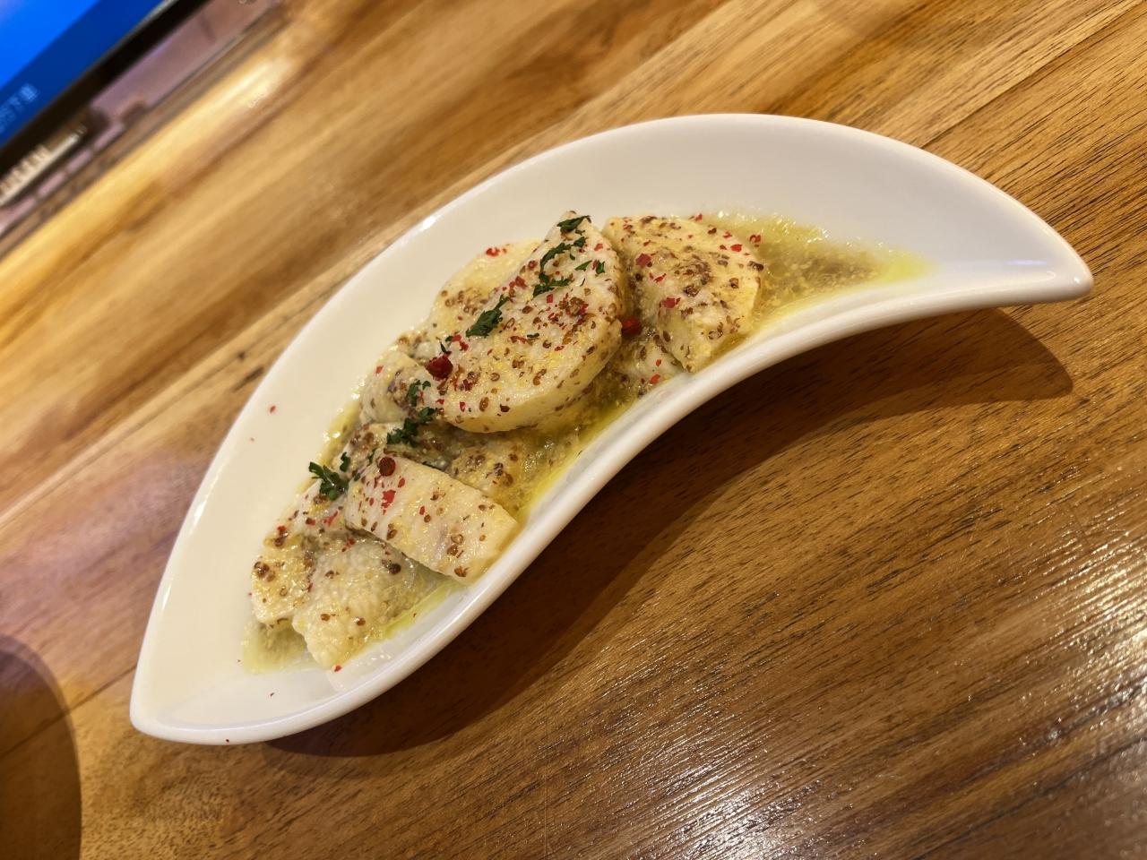 長芋のコンフィ、レモンマスタード。