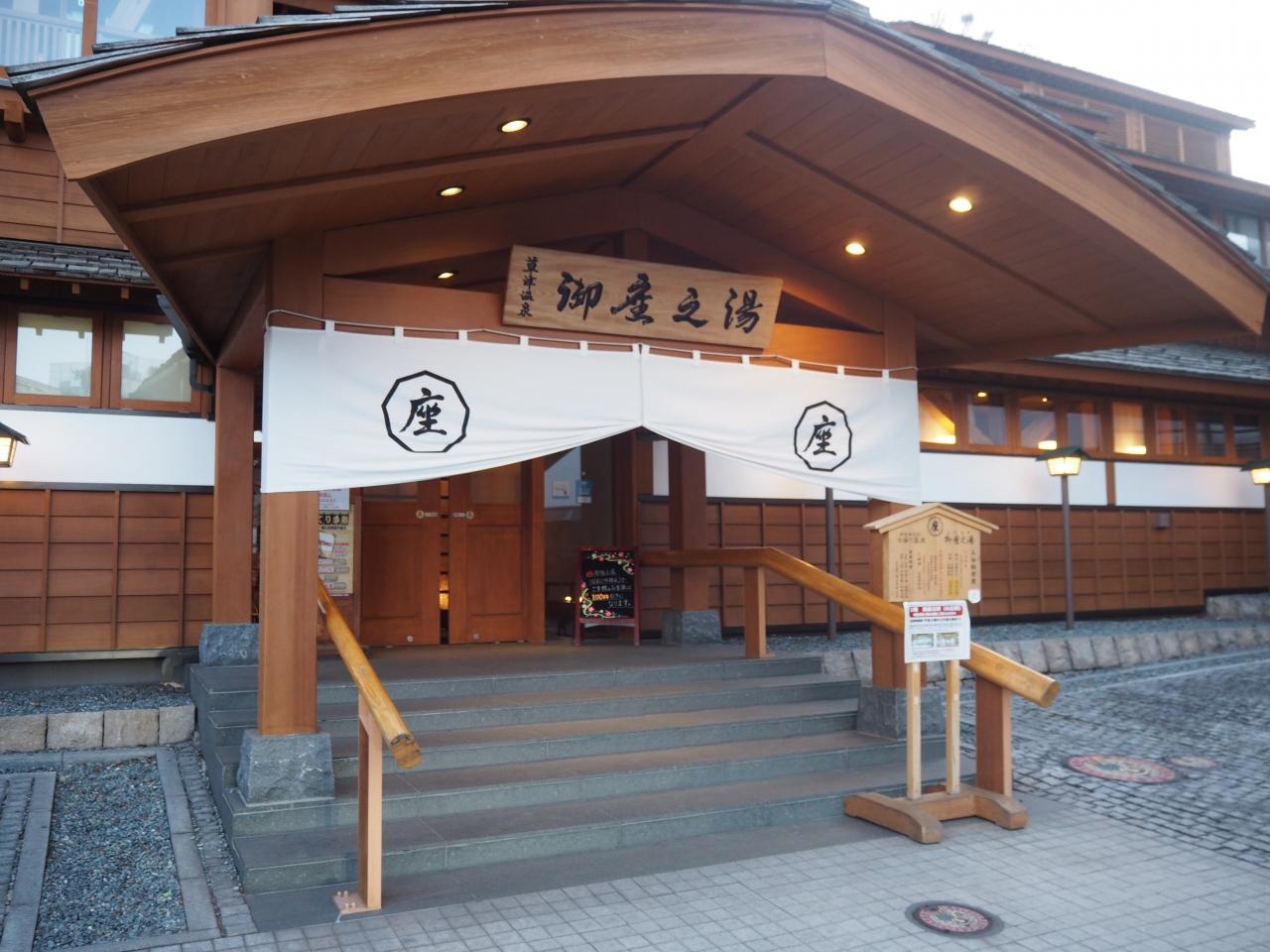 三湯めぐりの最後は湯畑に面している御座の湯です。