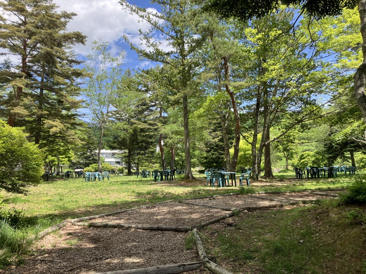 森の中には、椅子とテーブルがたくさんあり、自由に使える