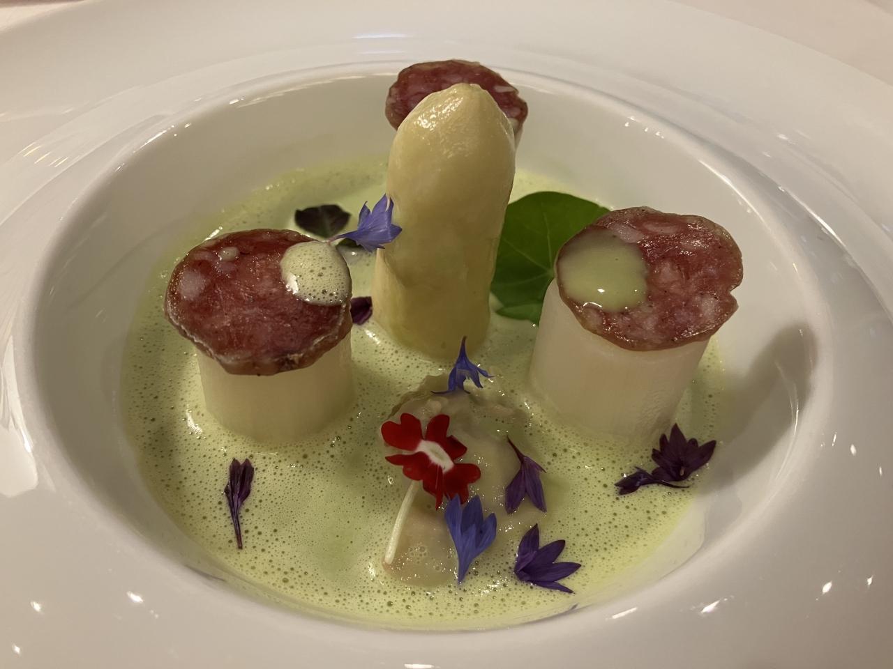 フランスからのホワイト・アスパラガスは、歯ごたえのある茹で方で、美味しかったです。フランスで食べたのより、太かった