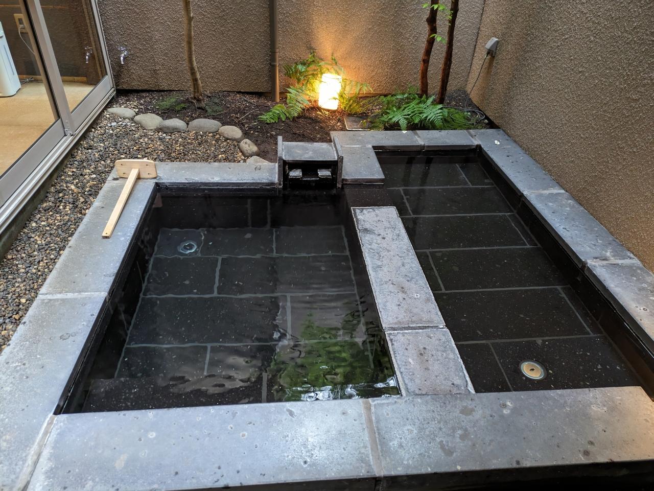 お部屋の露天風呂。右側は足湯か寝湯で利用します。