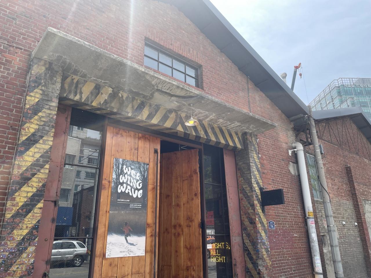 どう見ても倉庫な入口で戸惑いました。 -