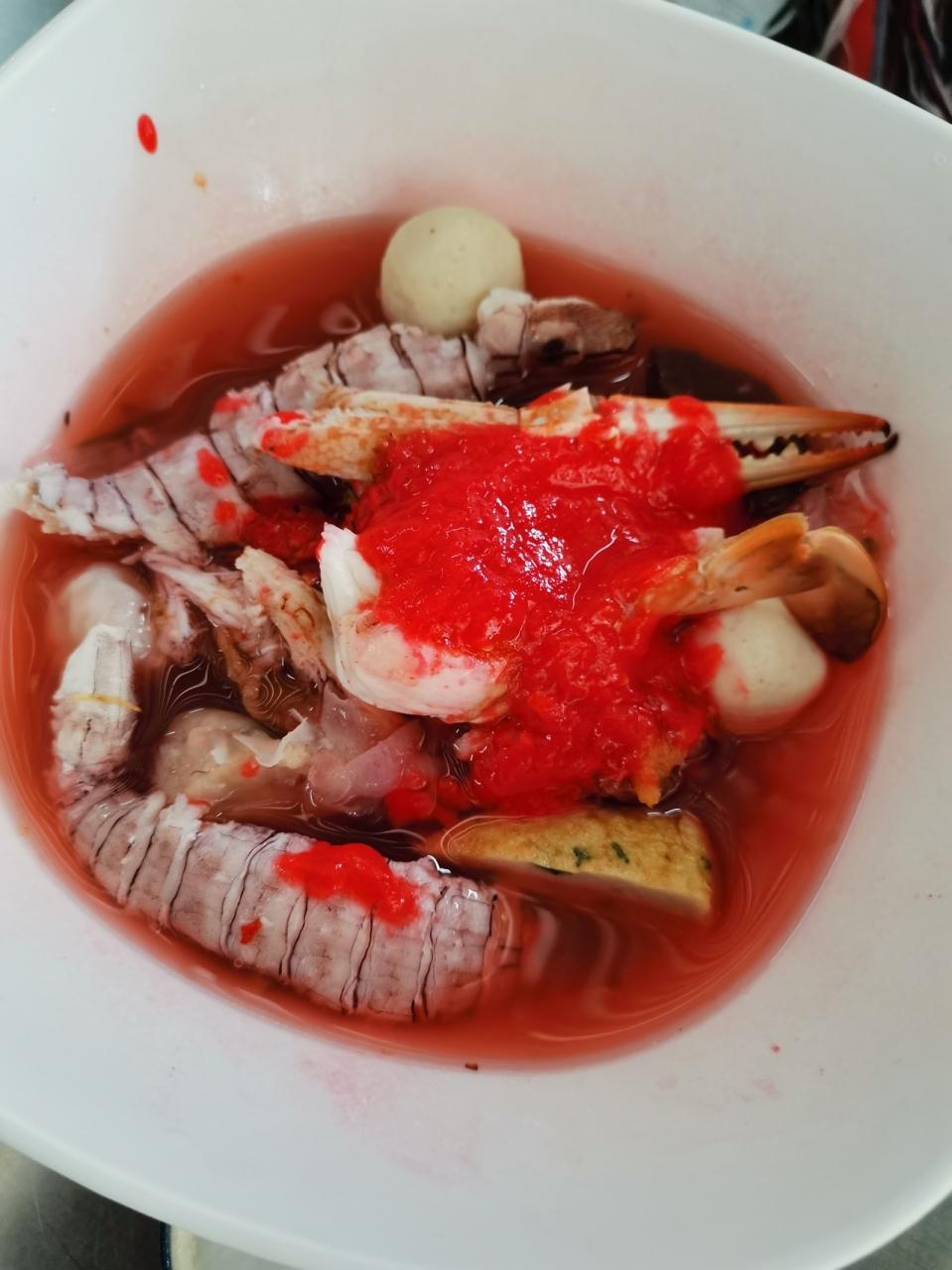 これはシャコと蟹爪のドライイエンタフォー(紅麹腐乳)バミー -