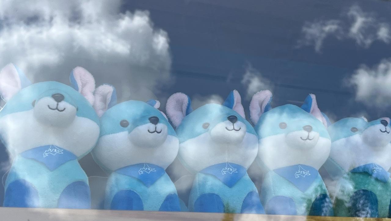 お店のぬいぐるみも青い。