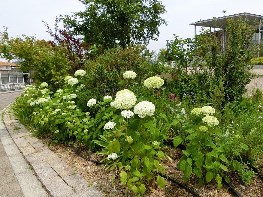 今まで「タウン・ガーデン」では、白色のアジサイ「アナベル」を数回見たことがありますが、「ウェルカム・ガーデン」エリアで、白色の「アジサイ」を見た記憶はありません。