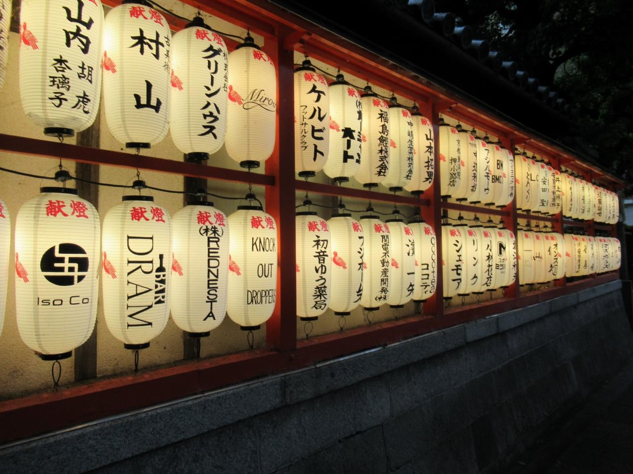 こちらはホテル近くの御池通沿いにある御所八幡宮。この写真だと提灯が明るくて夕暮れのようですが・・・