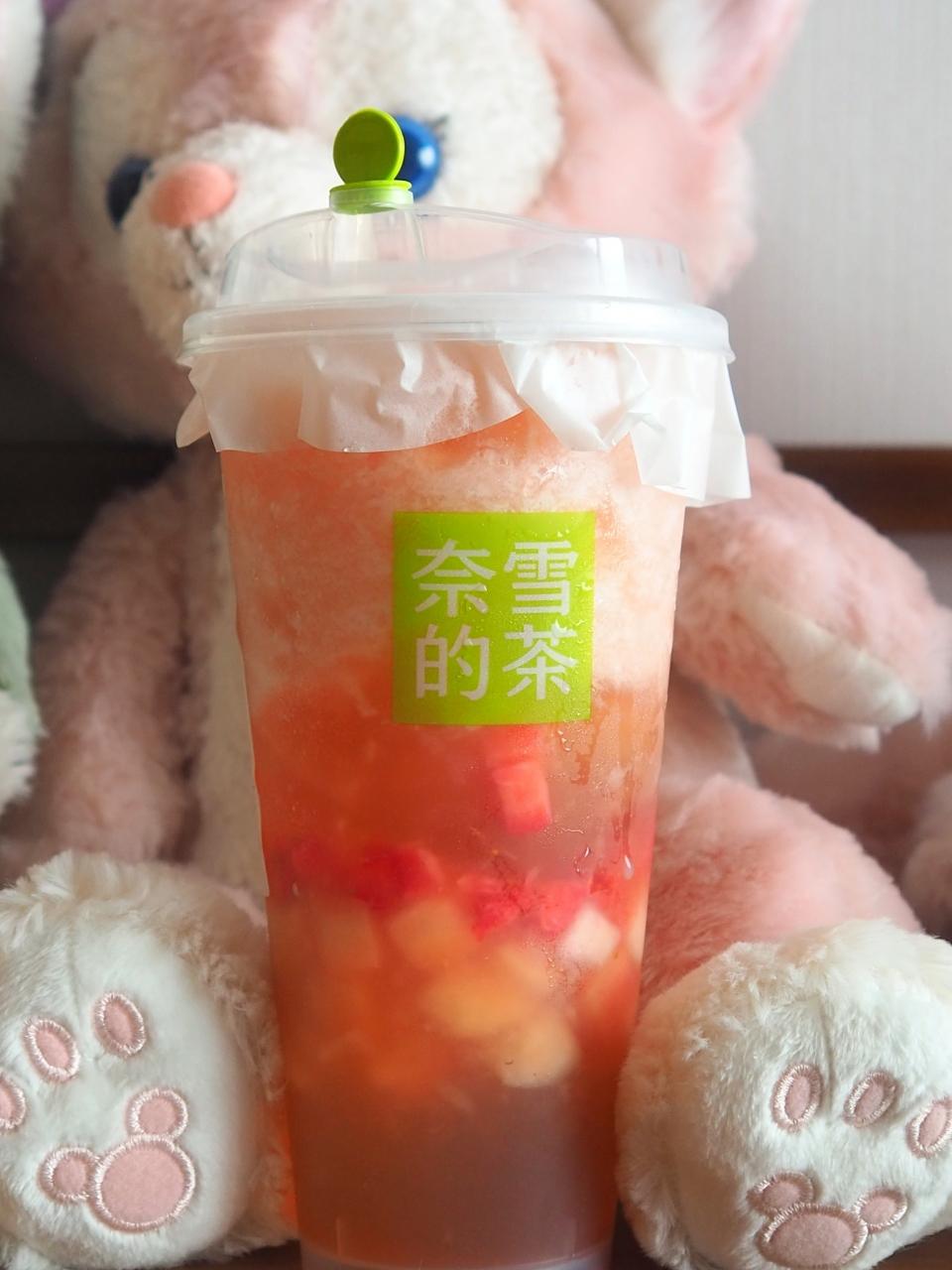 桃の果実がたっぷりのおいしい桃ドリンク -