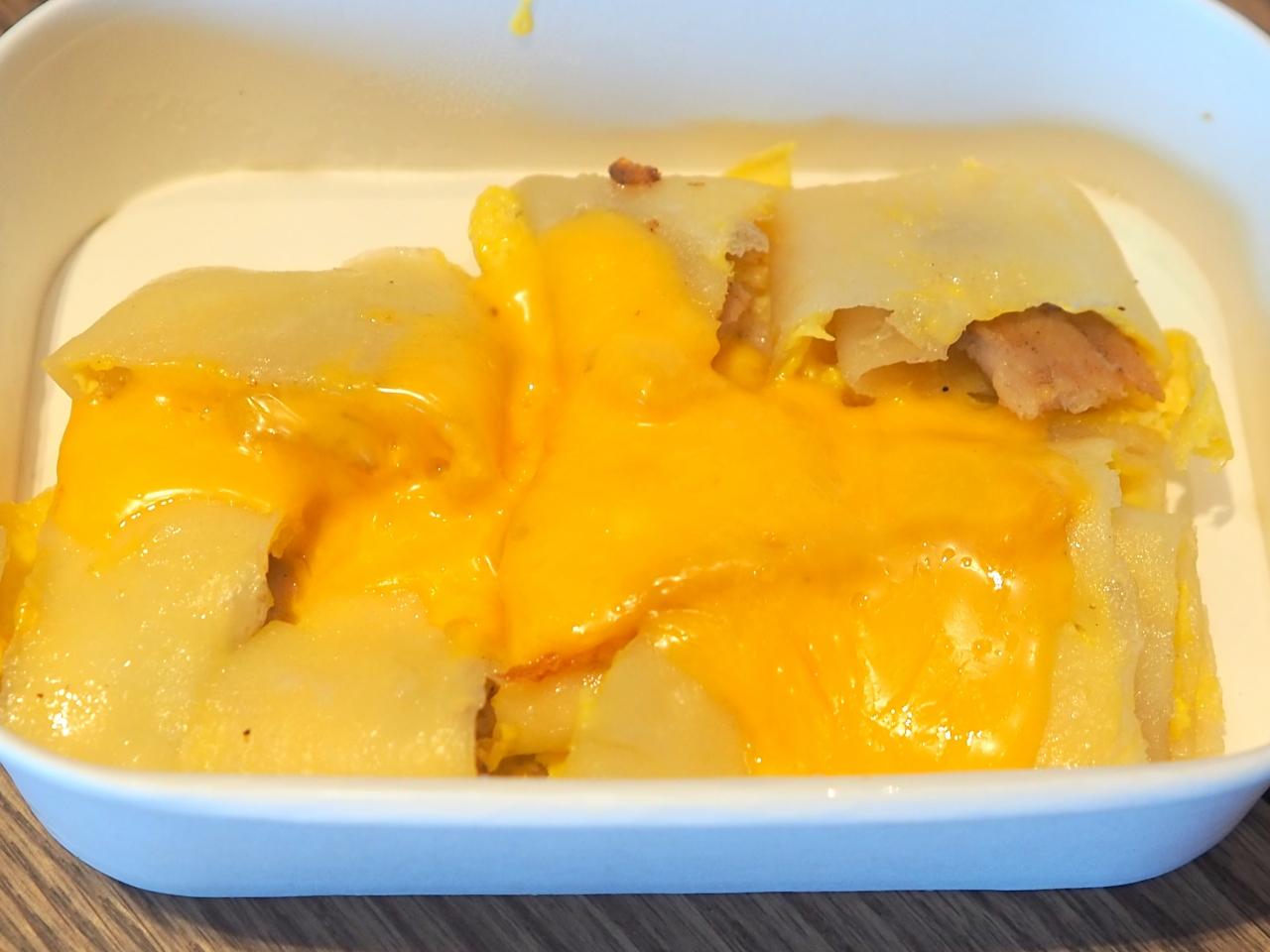 私がよく見ていたバラエティ番組では餡はお肉の上にかけていたので同じようにします