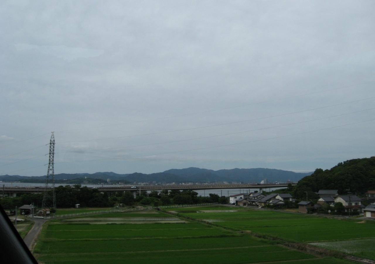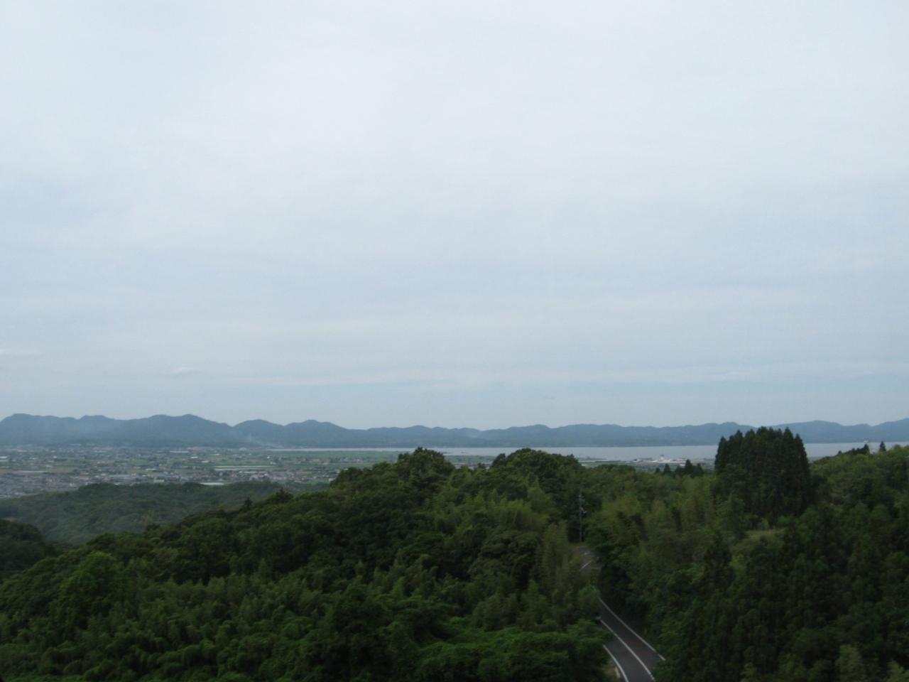 出雲大社から足立美術館へ1時間程バスで向かいました。遠くに松江の街が見えました。