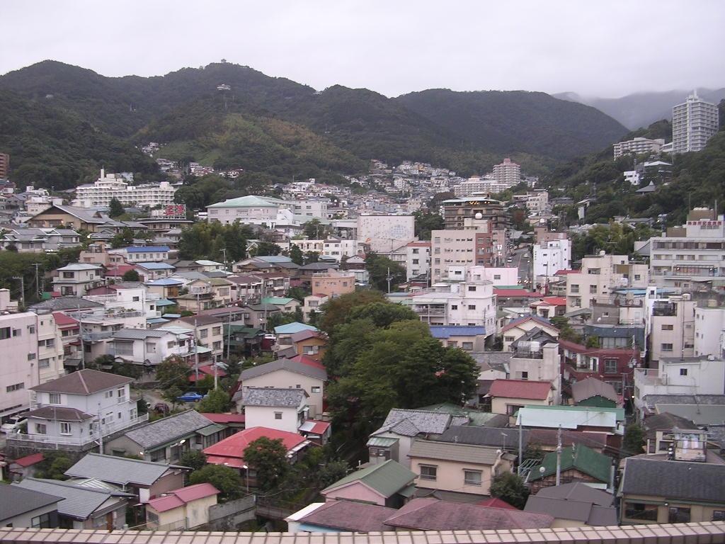 山の中腹まで大きな宿泊施設が立っている。