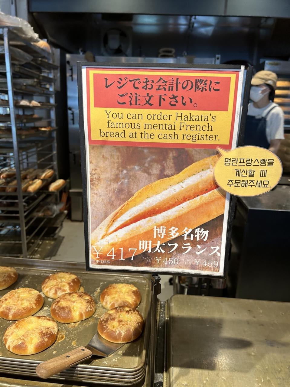 レジで注文をすると、焼きたてのバゲットに明太子を入れてくれる