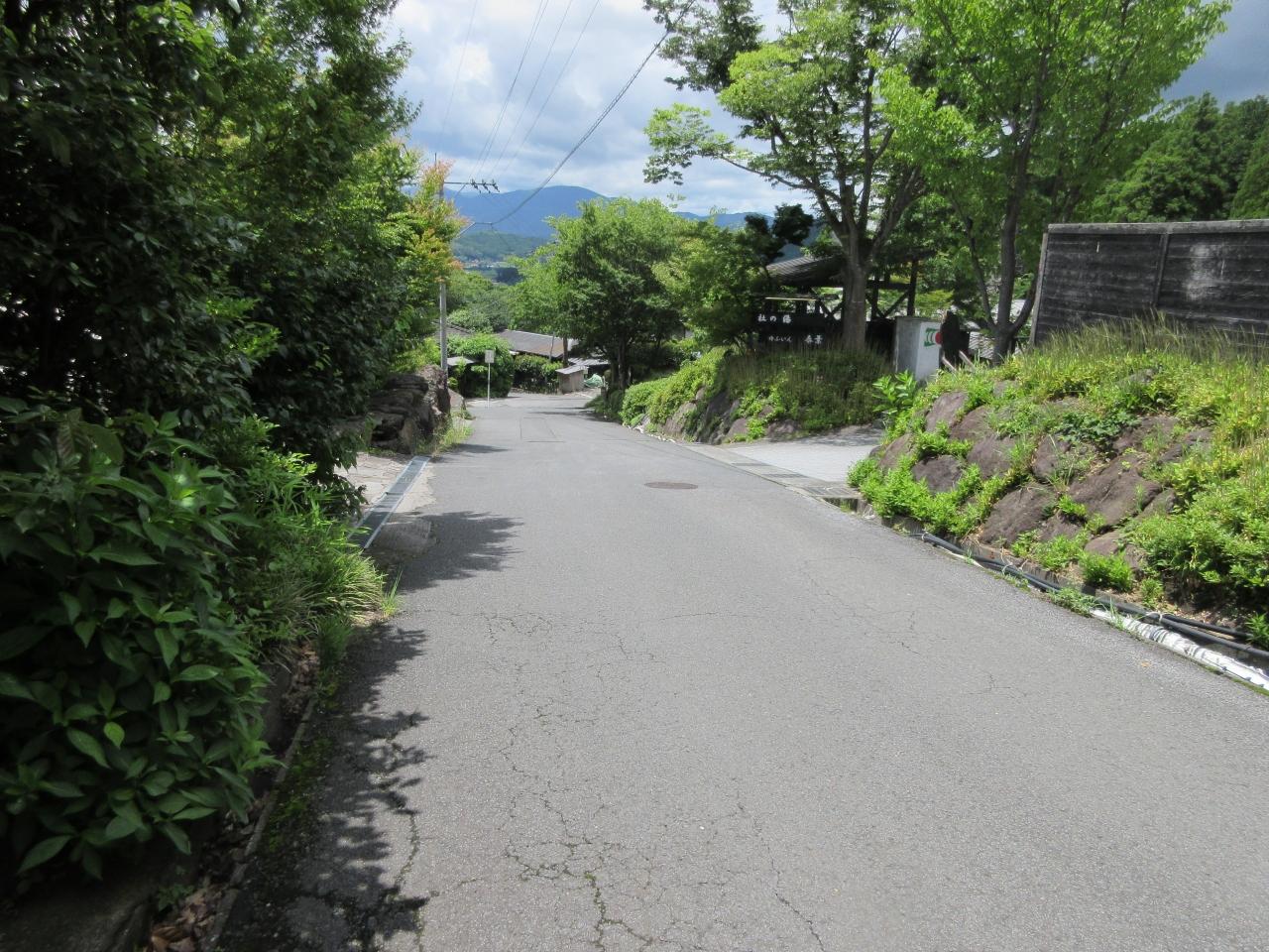 観光客でいっぱいの湯の坪街道から離れて鳥越坂を歩きます。このあたりはけっこうな坂だけど、静かな別荘地という感じです。