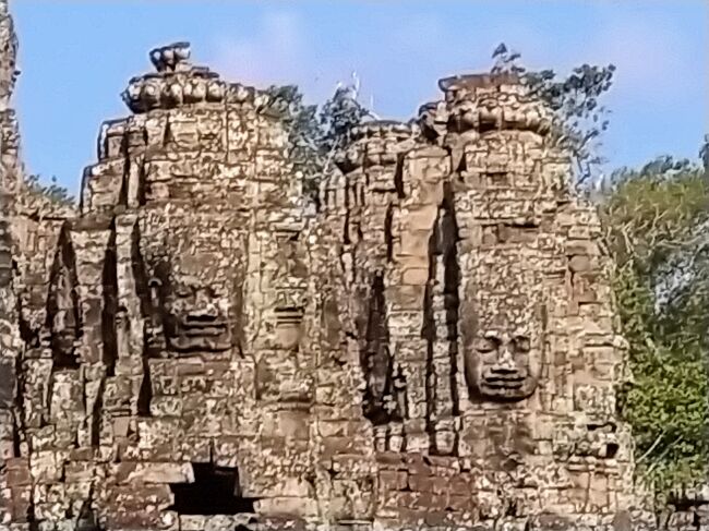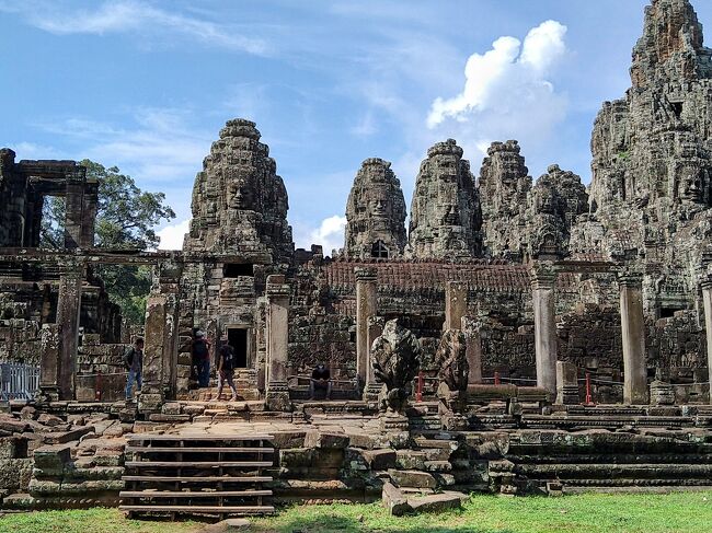 南大門をこえた先に見えてきたのが、アンコールトムのちょうど中央に位置する「バイヨン寺院」。ジャヤーヴァルマン7世がにより仏教寺院として建てられました。アンコールトム観光のメインです。