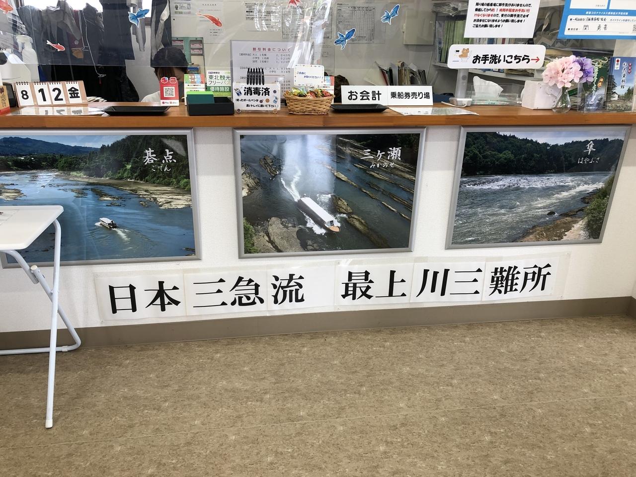 予約していた最上川三難所下りの受付に到着。11:50発の船です。空き状況もネットで随時更新されており便利でした。
