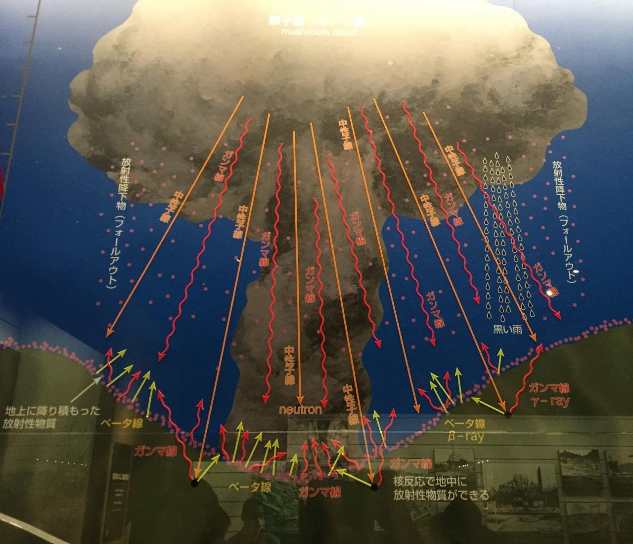 投下後、地上に降り積もった放射性物質などの説明。