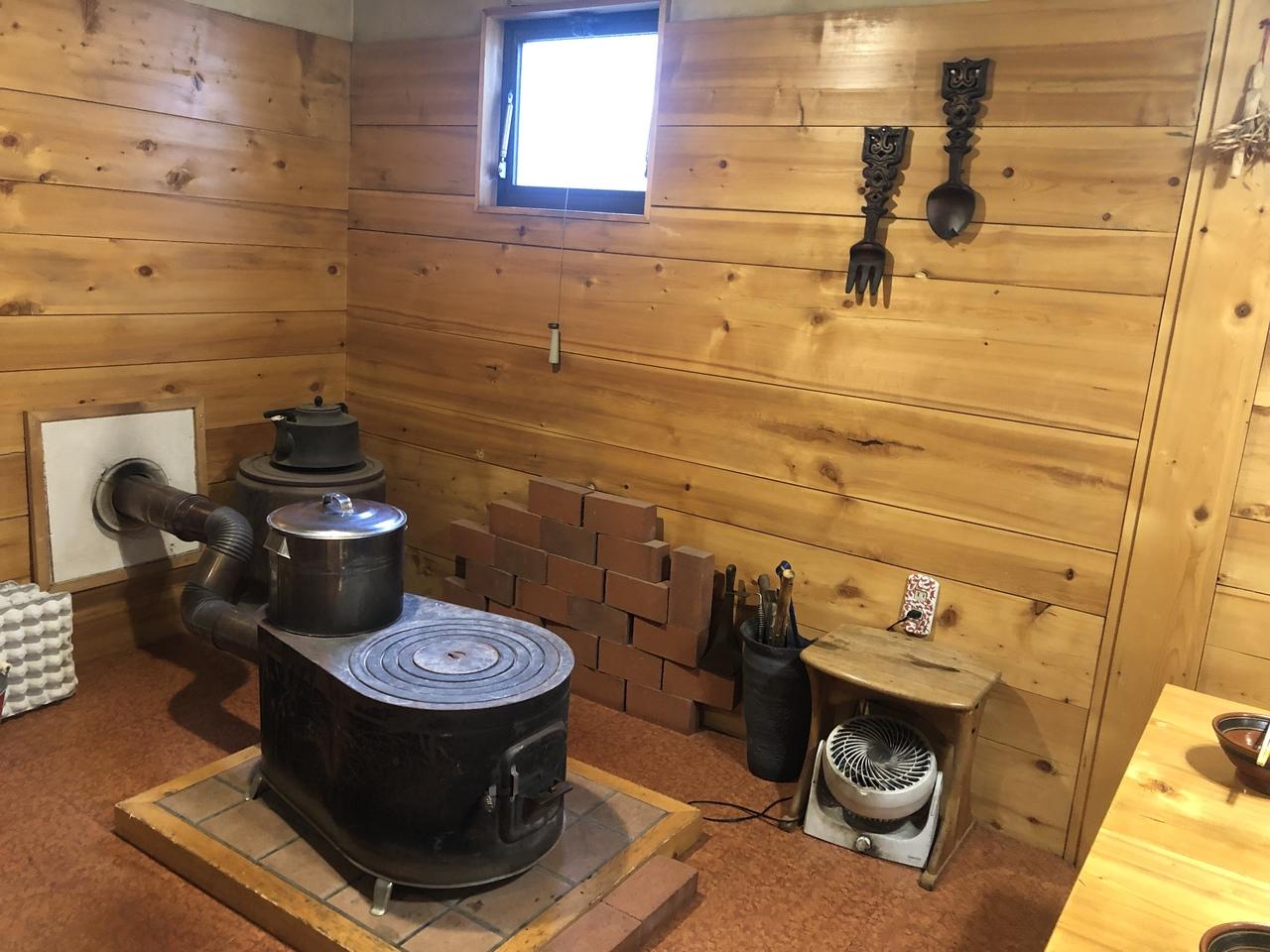 70年前の国鉄の宿舎を、移設したので断熱材がなく、4月から10月までの季節限定の宿 -