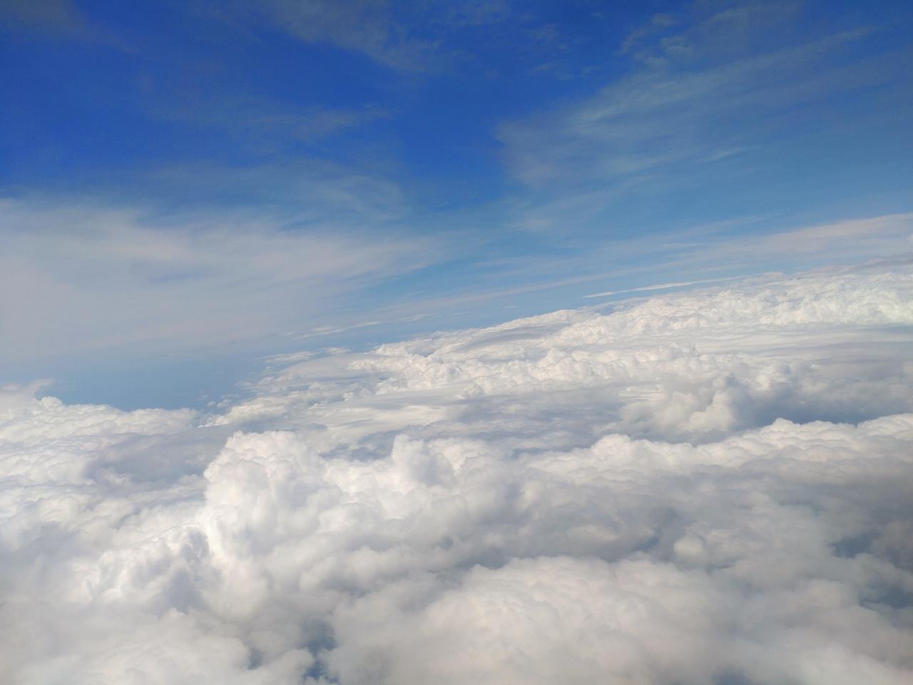離陸して、少ししたあたり、きれいに渦を作る雲。飛行機座席は右側でした。