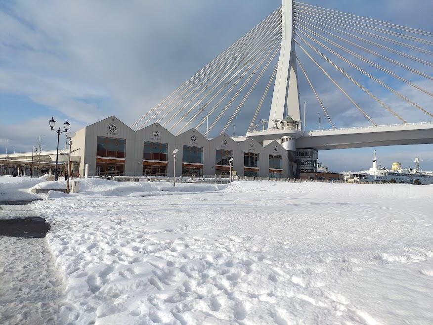 上に見える青森ベイブリッジは、冬季は歩行禁止でした。