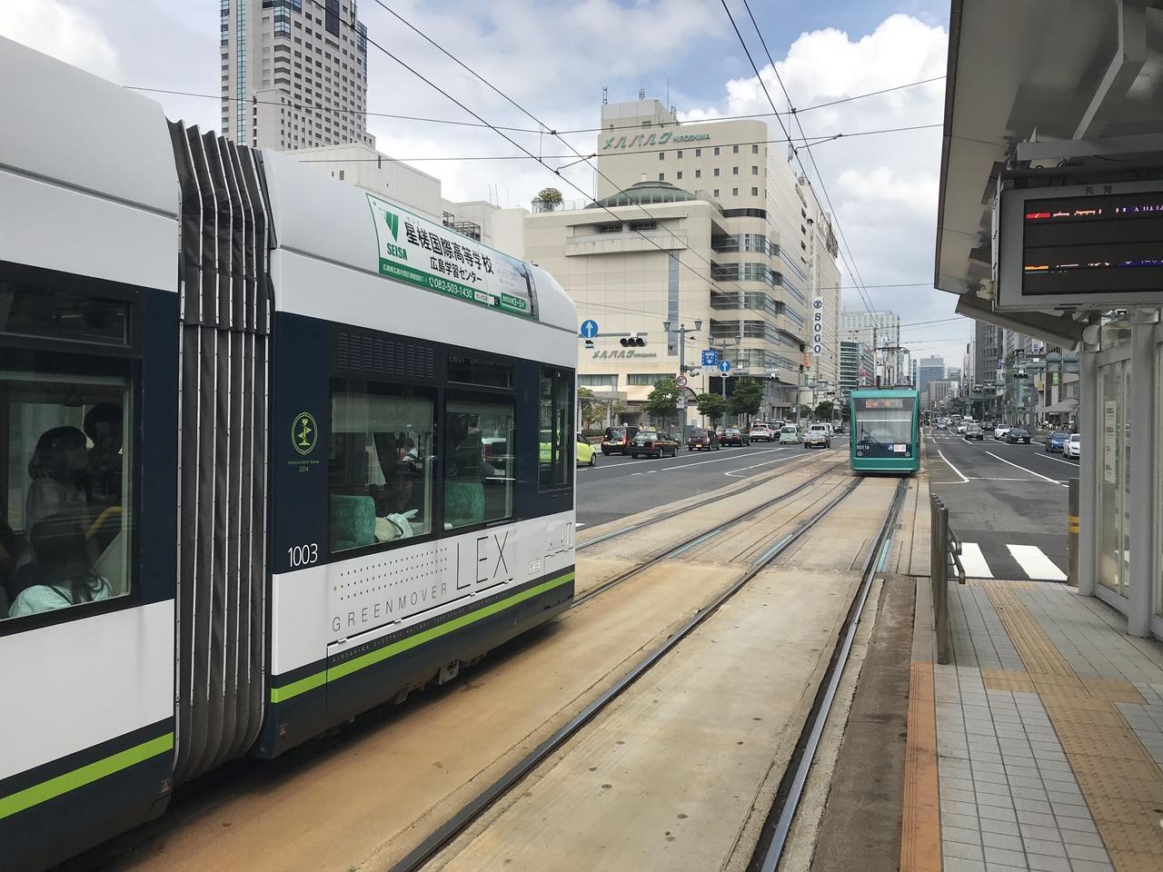 広島電鉄の原爆ドーム前から広電西広島までの区間は、広島の繁華街を離れ電車はスムーズに走る。 -