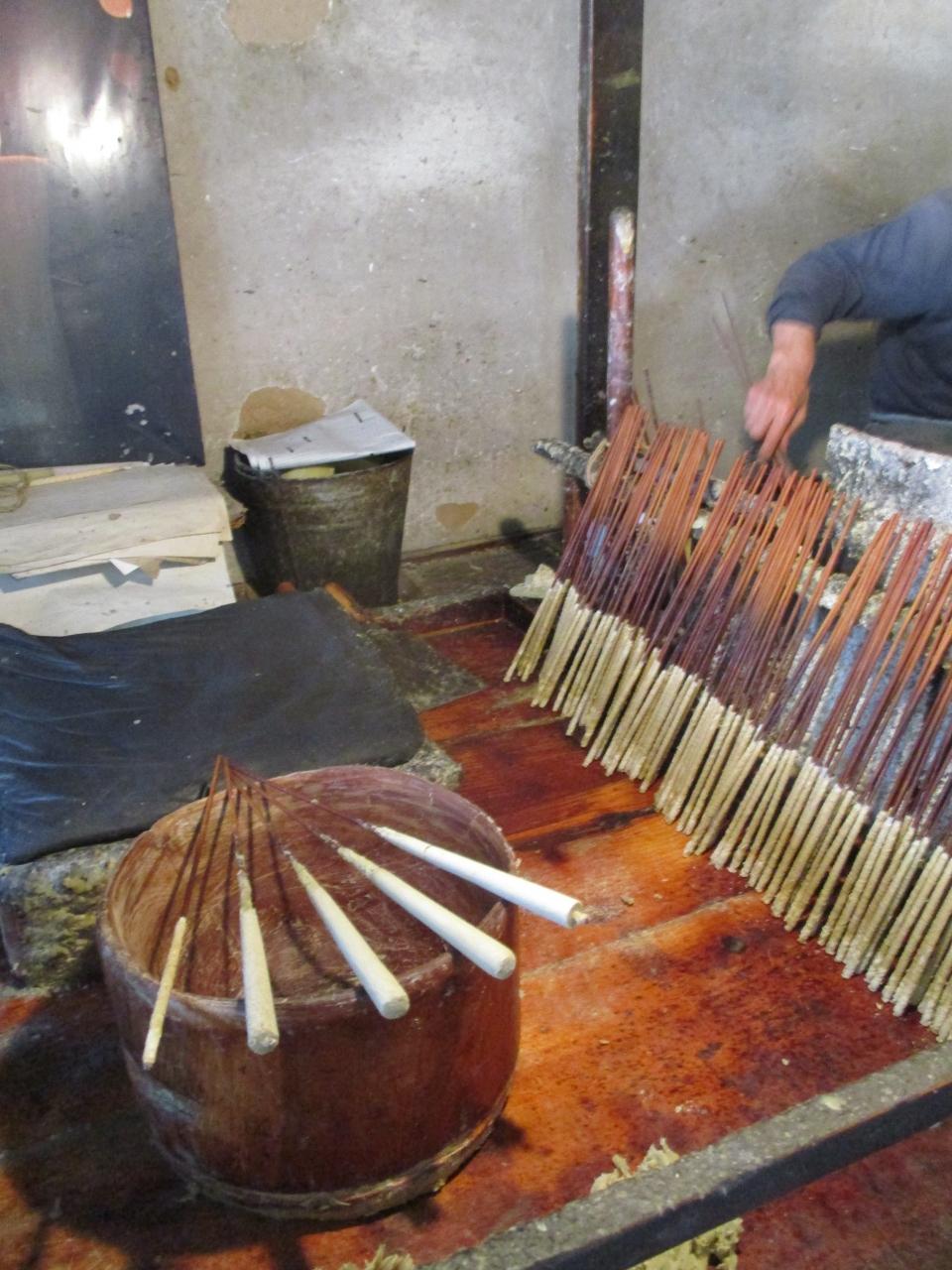 ご主人が実際に芯の束を持たせてくれました。驚くほど軽い!